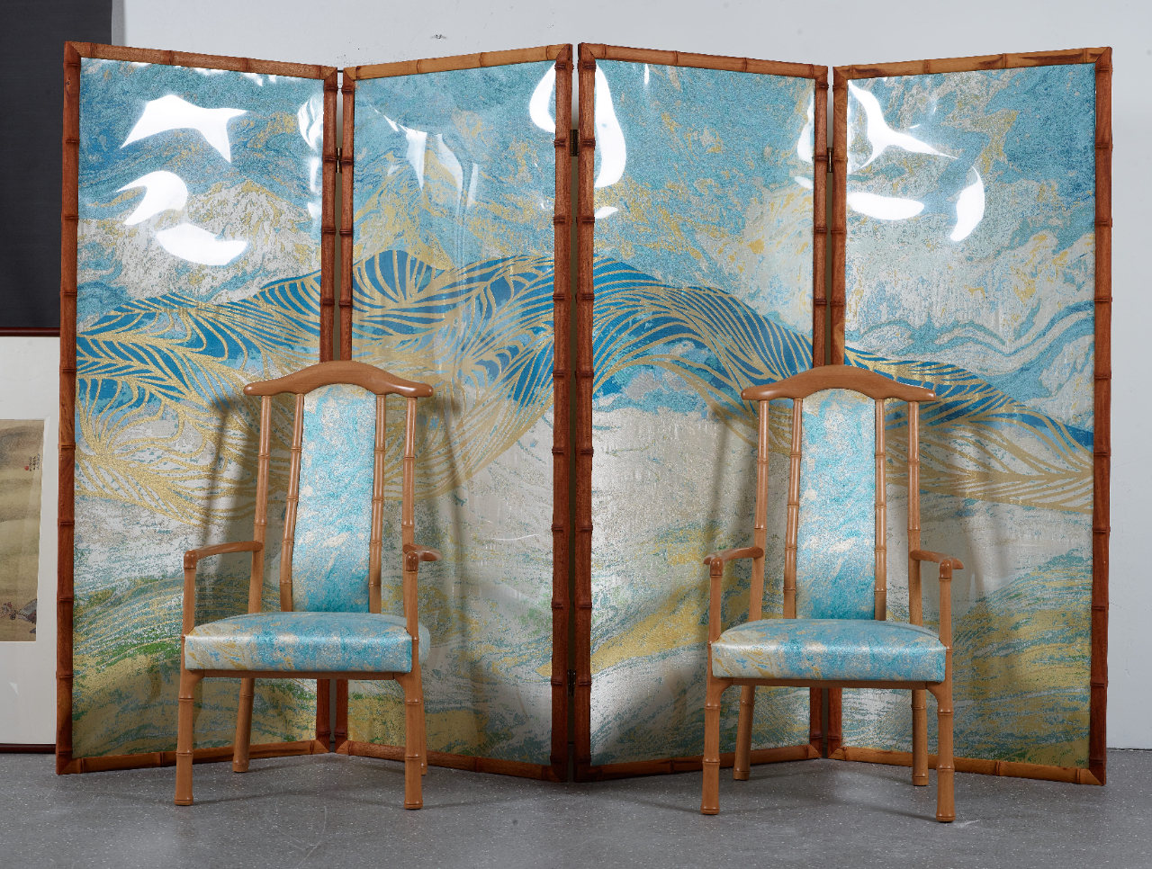 南京云锦《青绿东方》屏风、靠椅家居组合 金文 高伟 屏风:340*215*8 靠椅:70*60*110