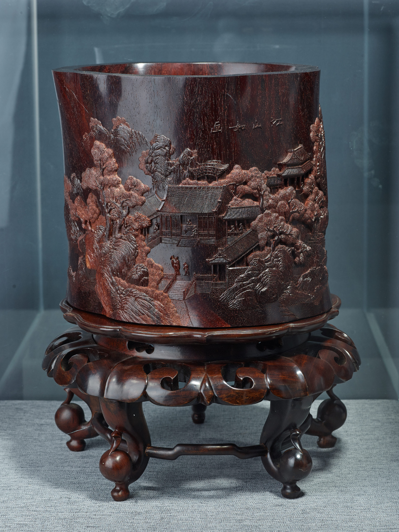 木雕《湖光山色图》 刘承林 长30、宽30、高40(cm)