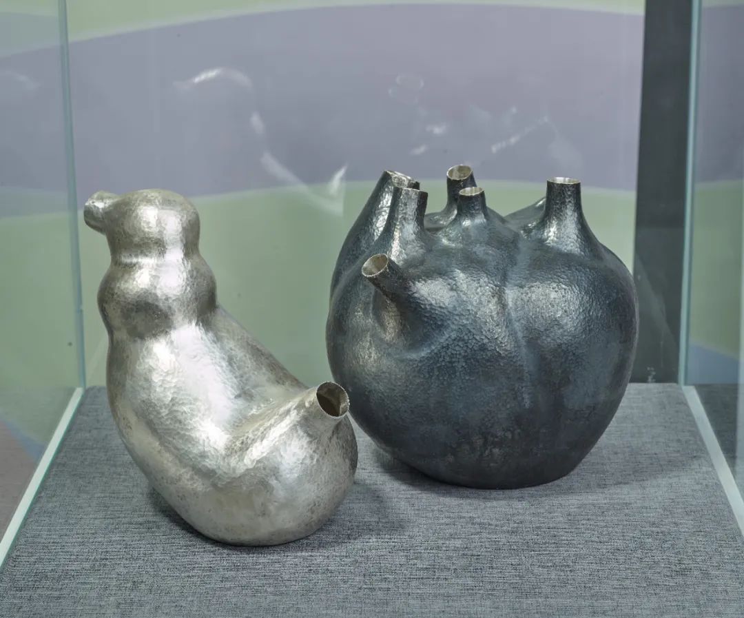 陶瓷(均陶)《儿童游戏鼎(踢毽子斗蛐蛐)》 方薛斐 长55、宽55、高50(cm)