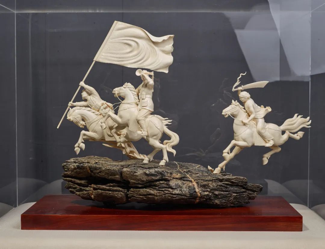 仿古牙雕《星火燎原》 王中帮 长75、宽35、高45(cm)