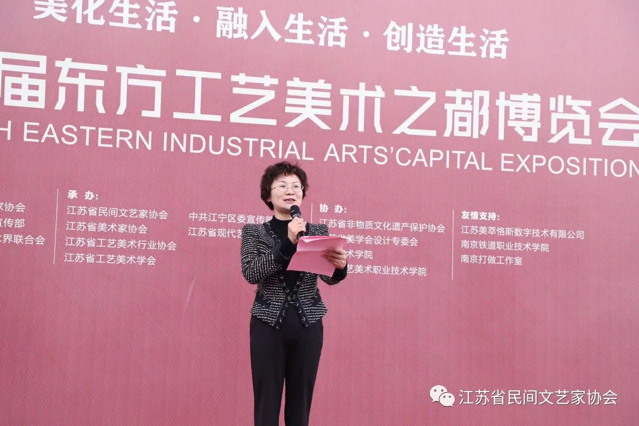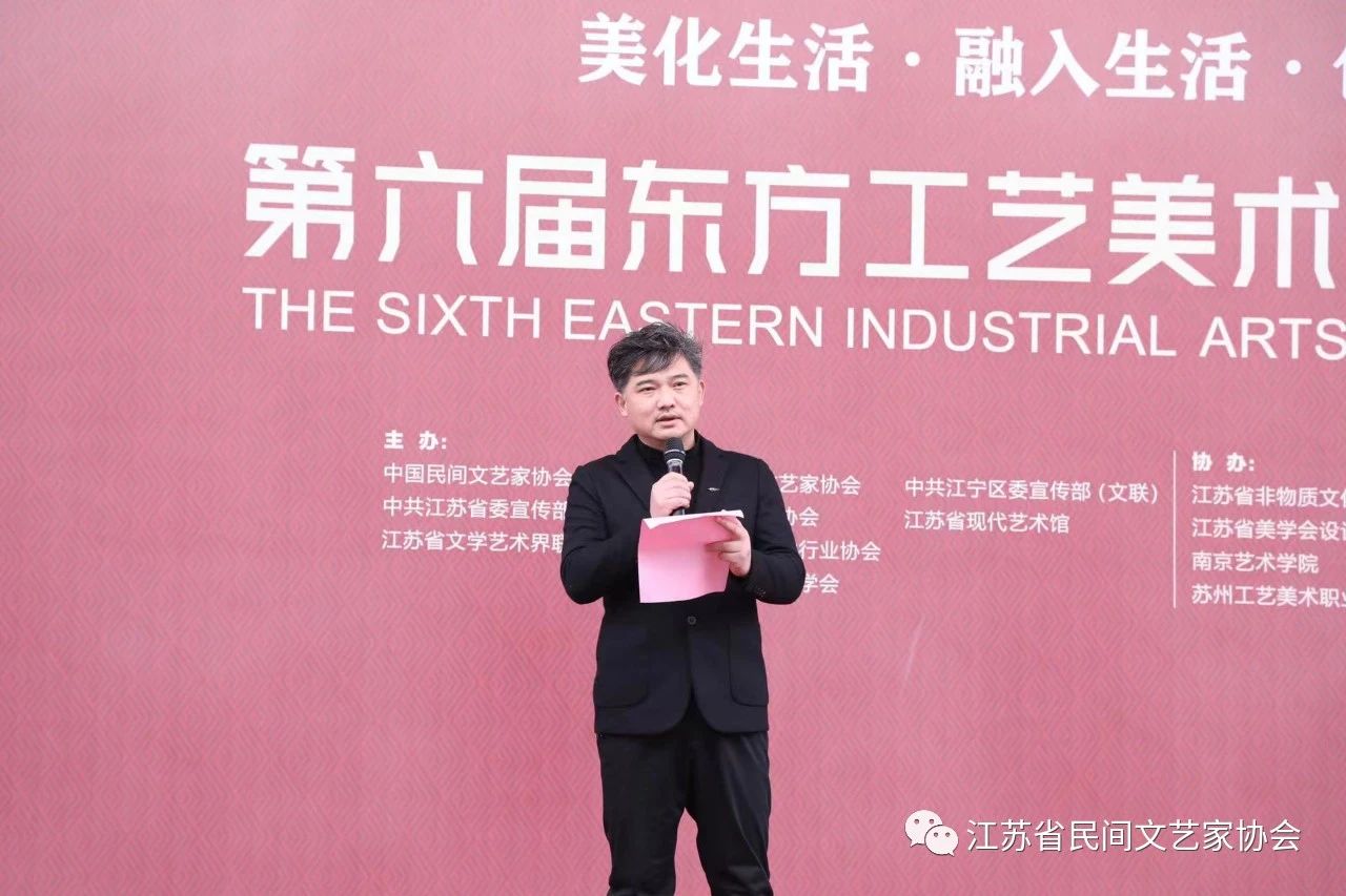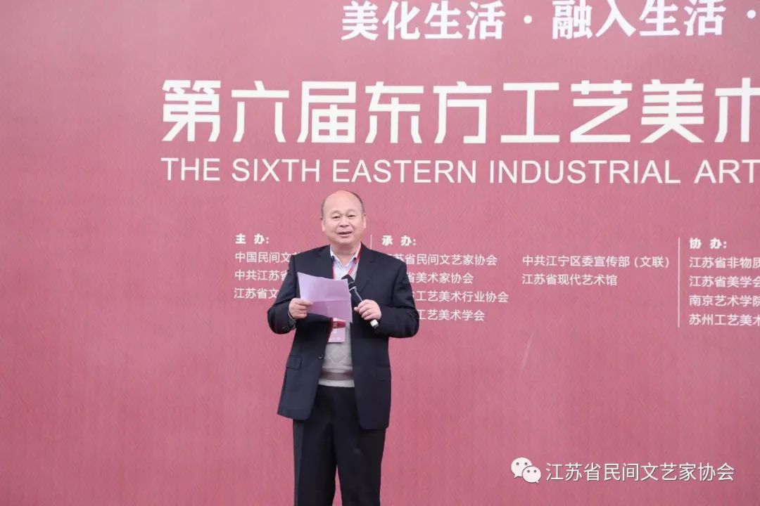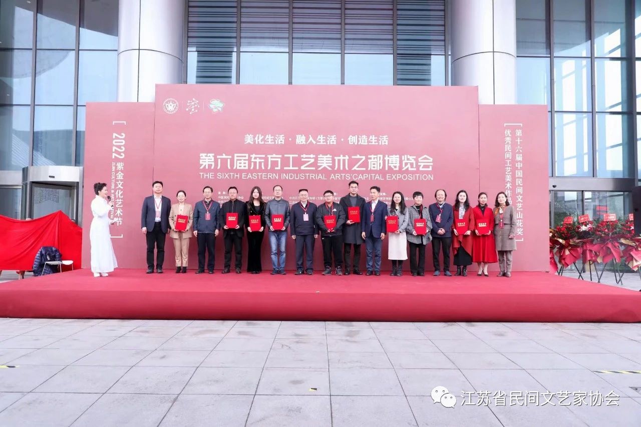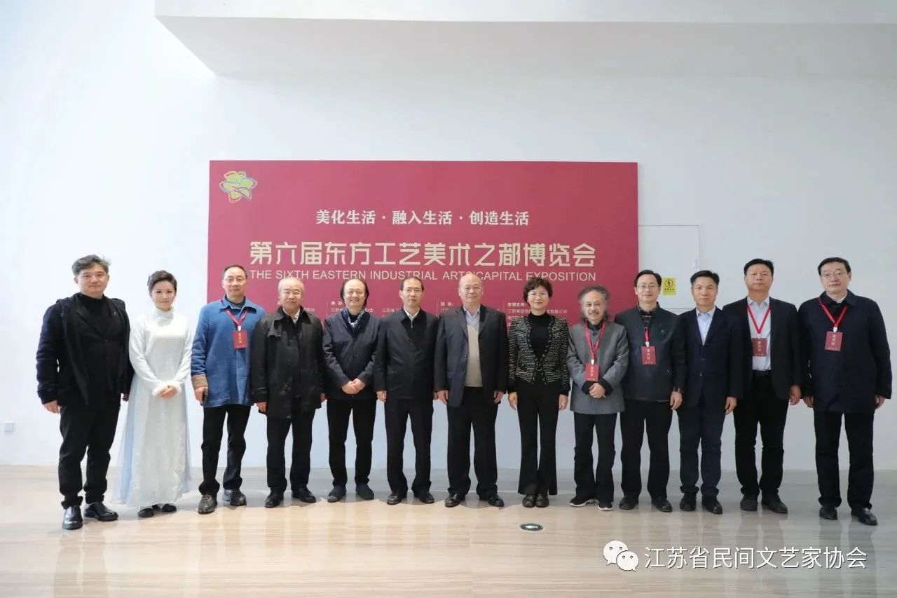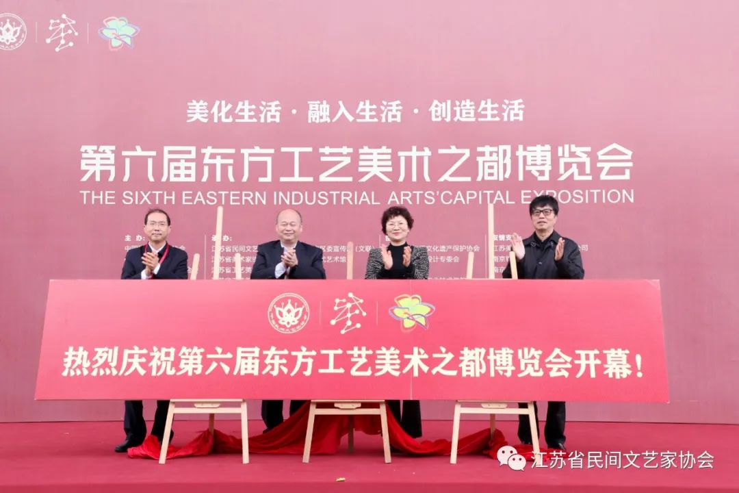 11月19日,由中国民间文艺家协会、中共江苏省委宣传部、江苏省文学艺术界联合会主办,江苏省民间文艺家协会、江苏省美术家协会、江苏省工美行业协会、江苏省工美学会、中共南京市江宁区委宣传部(文联)、江苏省现代艺术馆承办的“第六届东方工艺美术之都博览会”在江苏省现代艺术馆开幕。中国民协分党组书记、副主席、秘书长邱运华,中共江苏省委宣传部副部长徐宁,江苏省文联主席章剑华,江苏省文联党组书记、副主席、书记处第一书记水家跃,江苏省文联二级巡视员王建,江苏省文化投资管理集团副总经理王国丰,江苏省工艺美术行业协会会长于广云,江苏省委宣传部文艺处处长高民,中共南京市江宁区委宣传部部长张玉力,江苏省民协主席陈国欢,中国民协副主席、省民协副主席吴元新,江苏省文联副主席、省民协副主席姚建萍,江苏爱涛文化产业有限公司总经理陈思宁,江苏省民协副主席张丹、张来喜、季中扬、殷召义,副秘书长唐华伟,青年手艺人工作委员会主任、南京艺术学院副教授王克震等相关部门的领导、嘉宾、媒体,高校师生和参展艺术家代表出席了开幕式。邱运华、徐宁、章剑华、水家跃共同为“第六届东方工艺美术之都博览会”启幕。邱运华、徐宁、王建致辞,陈国欢介绍了东博会概况,王克震代表艺术家发言。