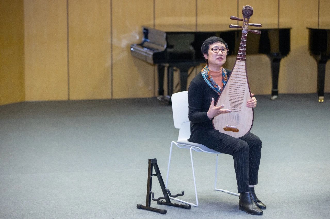 讲座最后,吴玉霞教授现场演奏了文曲《春江花月夜》和武曲《十面埋伏》,其演奏超凡脱俗,技惊四座,为所有听众带来一场极高的视听盛宴。吴玉霞教授从舞台到讲台角色互换,理论实践融合,为我院师生带来一场有思想、有高度、有境界的学术讲座。