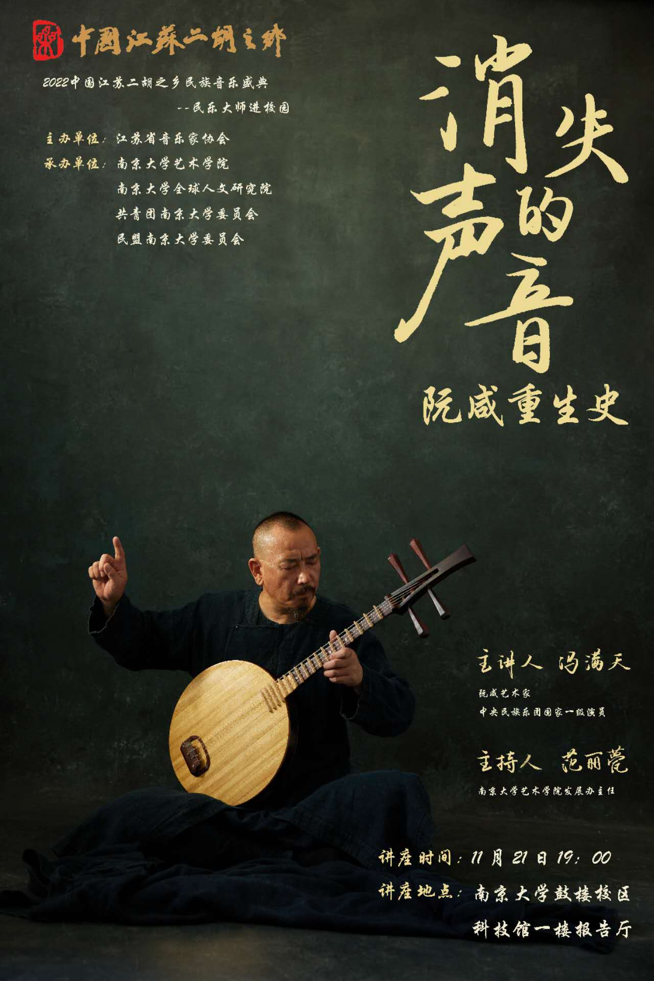 11月21日,2022中国江苏二胡之乡民族音乐盛典“民乐大师进校园”系列活动之一“消失的声音,阮咸重生史”阮咸艺术家,中央民族乐团国家一级演员冯满天专场讲座在南京大学鼓楼校区科技馆报告厅成功举行。