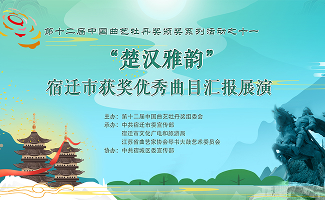 9月14日晚,由第十二届中国曲艺牡丹奖组委会主办,中共宿迁市委宣传部、宿迁市文化广电和旅游局承办,中共宿城区委宣传部、江苏省曲艺家协会琴书大鼓艺术委员会、宿迁市曲艺家协会协办的第十二届中国曲艺牡丹奖颁奖系列活动之十一——“楚汉雅韵”宿迁市获奖优秀曲目汇报展演在宿迁市宿城区政府礼堂举行。