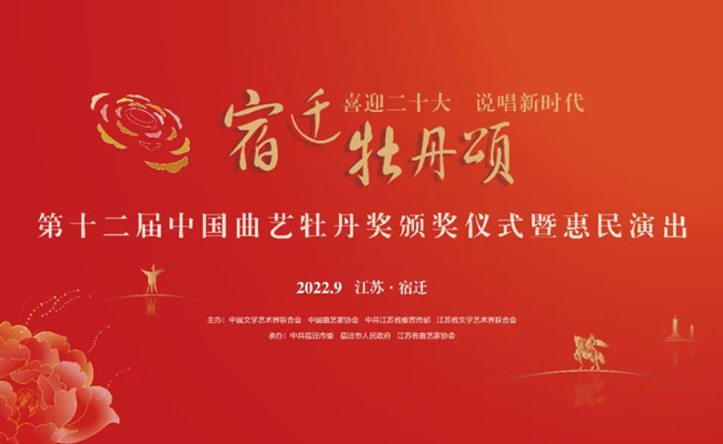 9月16日晚,由中国文联、中国曲协、江苏省委宣传部、江苏省文联共同主办的“喜迎二十大 说唱新时代”宿迁牡丹颂——第十二届中国曲艺牡丹奖颁奖仪式暨惠民演出在江苏省宿迁市举办
