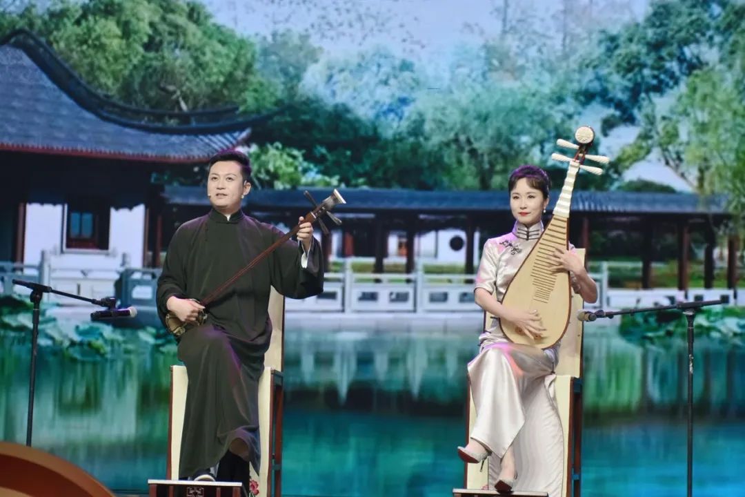 弹词小组唱《红色摇篮》、弹词开篇《莺莺操琴》《珍珠塔·诉恩人》《白蛇传·游山塘》《党的光辉照我心》《人间天堂在苏州》、短篇评话《智取威虎山·真假胡彪》、弹词选曲《芦苇青青•望芦苇》、弹词选回《三个侍卫官•巧唱空城计》《江姐上山》韵味醇厚悠长,说表弹唱细腻生动,传统经典和现代新创书目交替上演,为现场观众呈上了一台苏州评弹的视听盛宴。