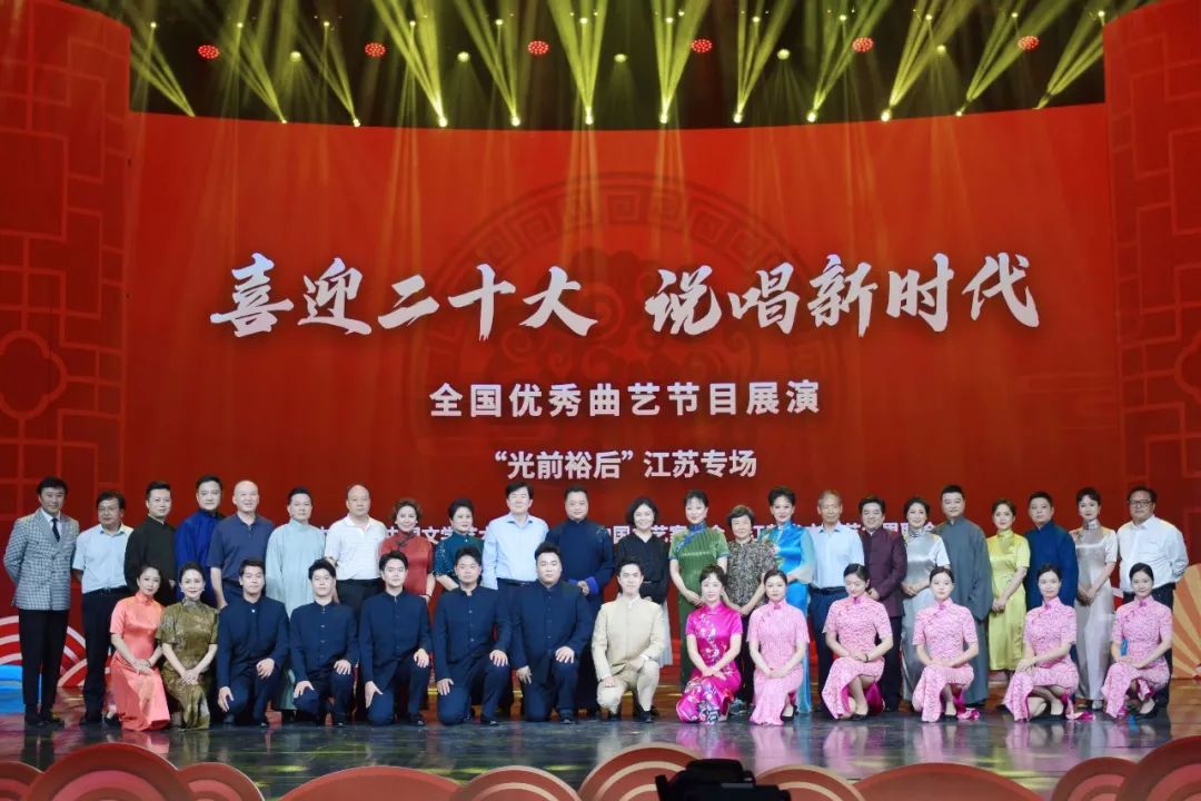 26日晚,“喜迎二十大 说唱新时代”——全国优秀曲艺节目展演“光前裕后”江苏专场在民族文化宫大剧院精彩上演。中国文联主席、中国作协主席铁凝,中国文联党组书记、副主席李屹,科学技术部副部长张雨东,中国文联第九届副主席杨承志,中国文联办公厅主任邓光辉,著名小品表演艺术家郭达,中国曲协分党组书记、驻会副主席杨发航,中国曲协副主席吴文科,中国曲协分党组成员、副秘书长黄群,中国文联曲艺艺术中心主任项云,中国文联网络文艺传播中心副主任冉茂金,中国文联出版社副总编辑姚莲瑞等领导与现场观众一起观看了演出。