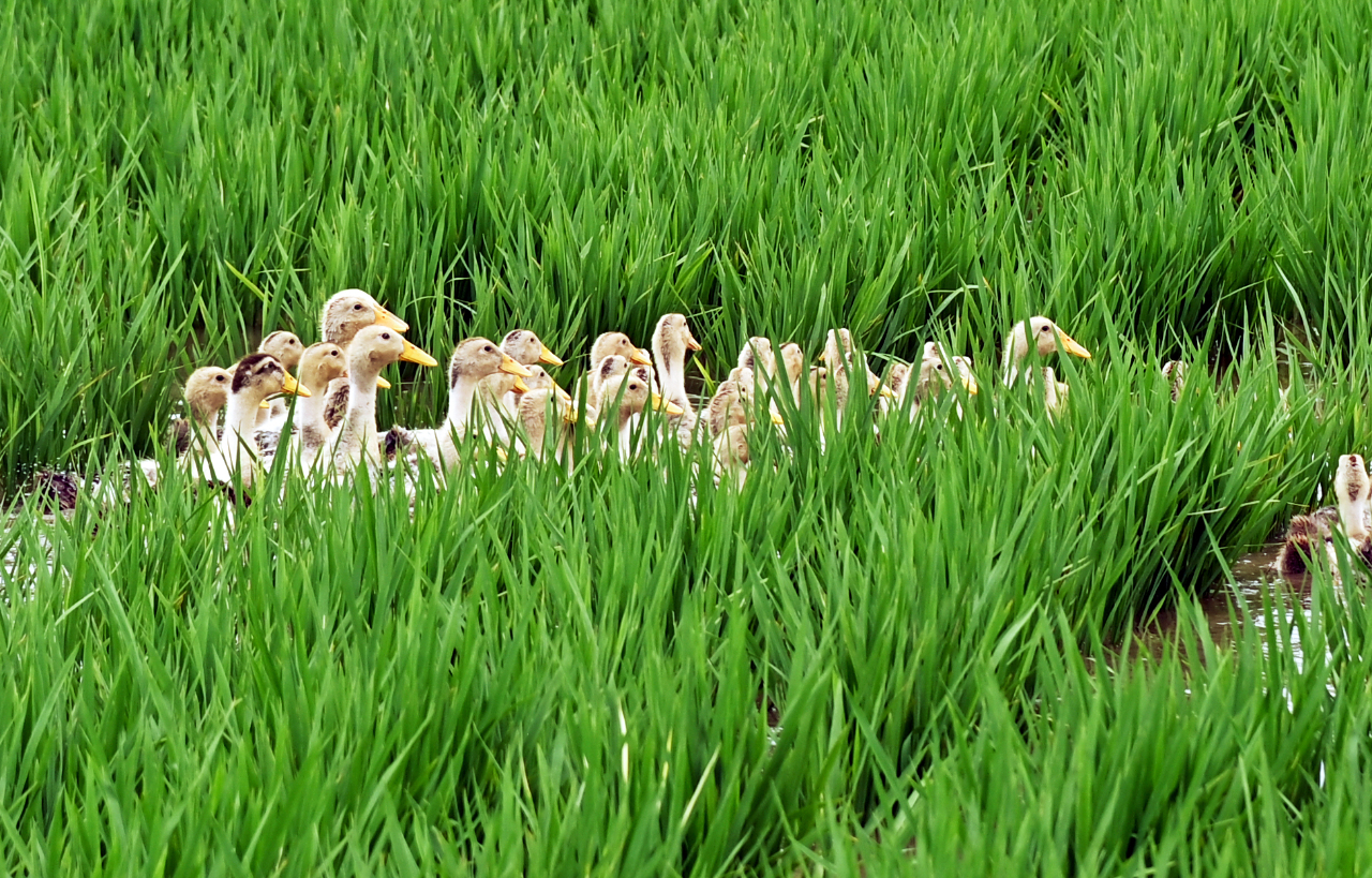 永联水稻基地开展的稻鸭共作模式。