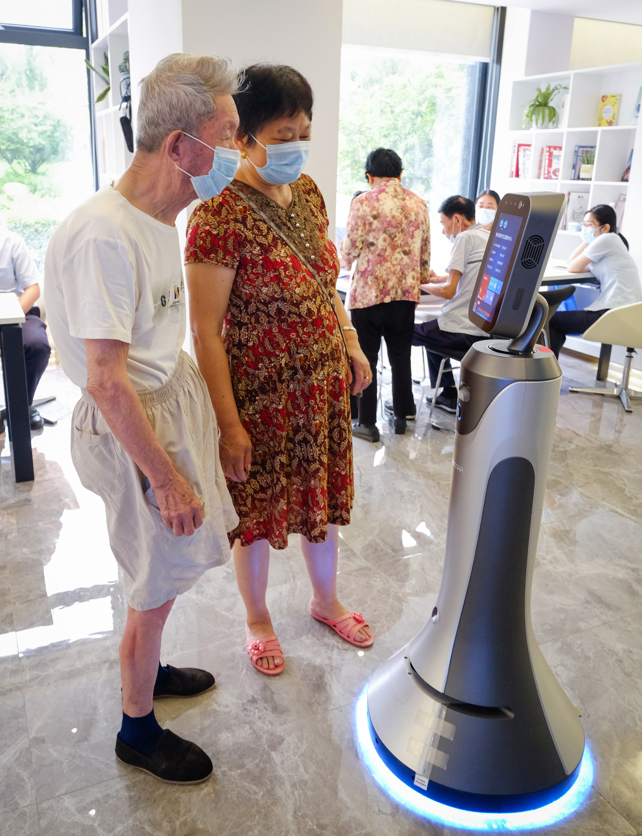 村民在永联数字生活综合服务中心体验机器人服务。