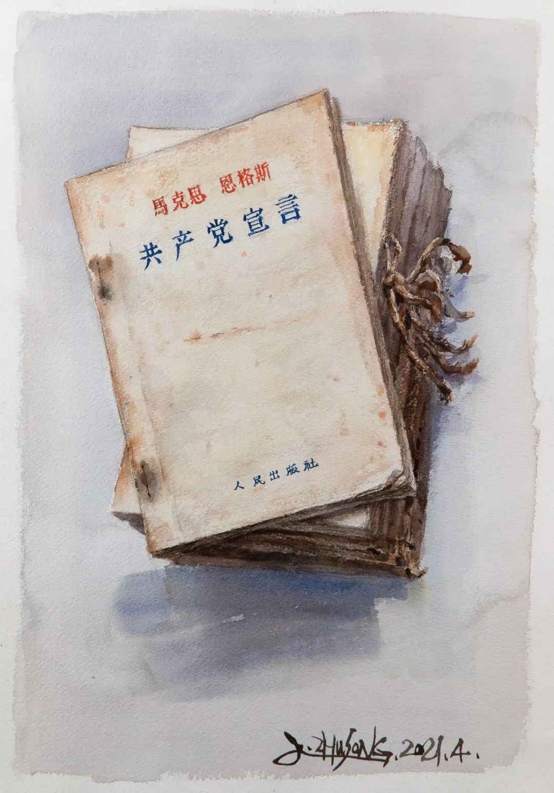 姜竹松 水彩 共产党宣言 36cm×41cm