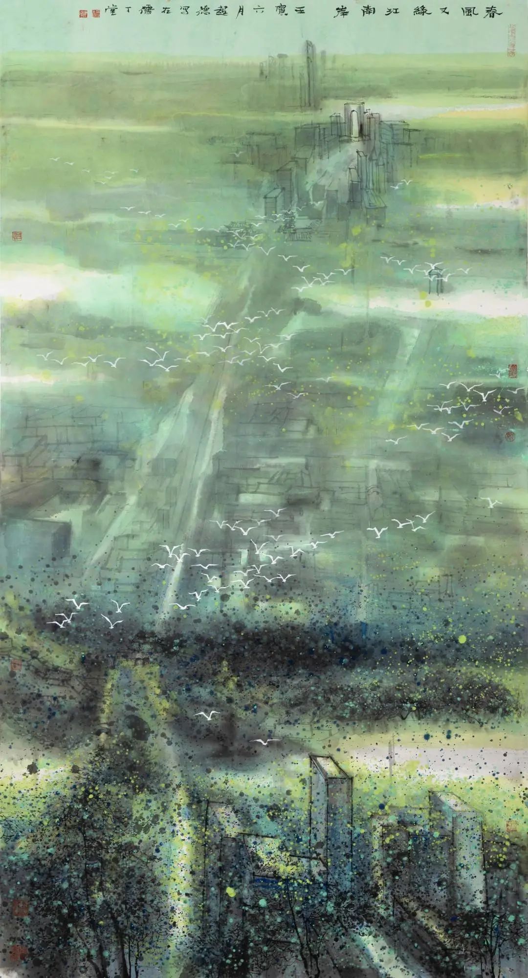 李超德 国画 春风又绿江南岸 197cm×96cm