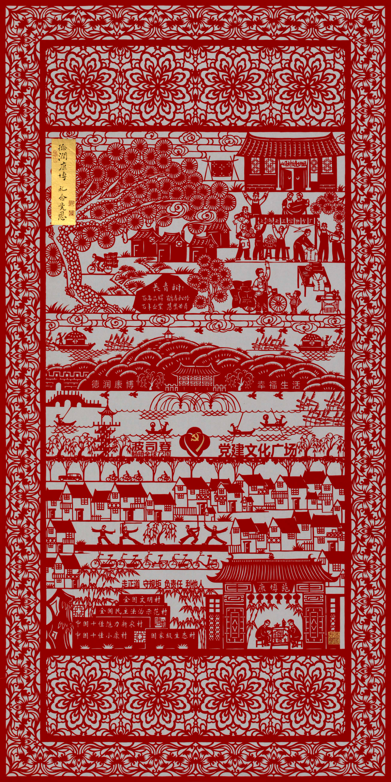 崔艳华 剪纸《德润康博永念党恩》138 x 68cm