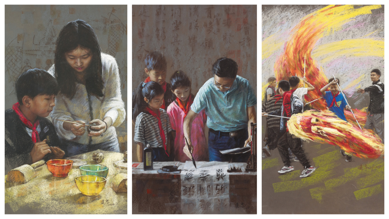 潘建忠 “双减”下的老师 粉画 78cm×55cm x3 常州