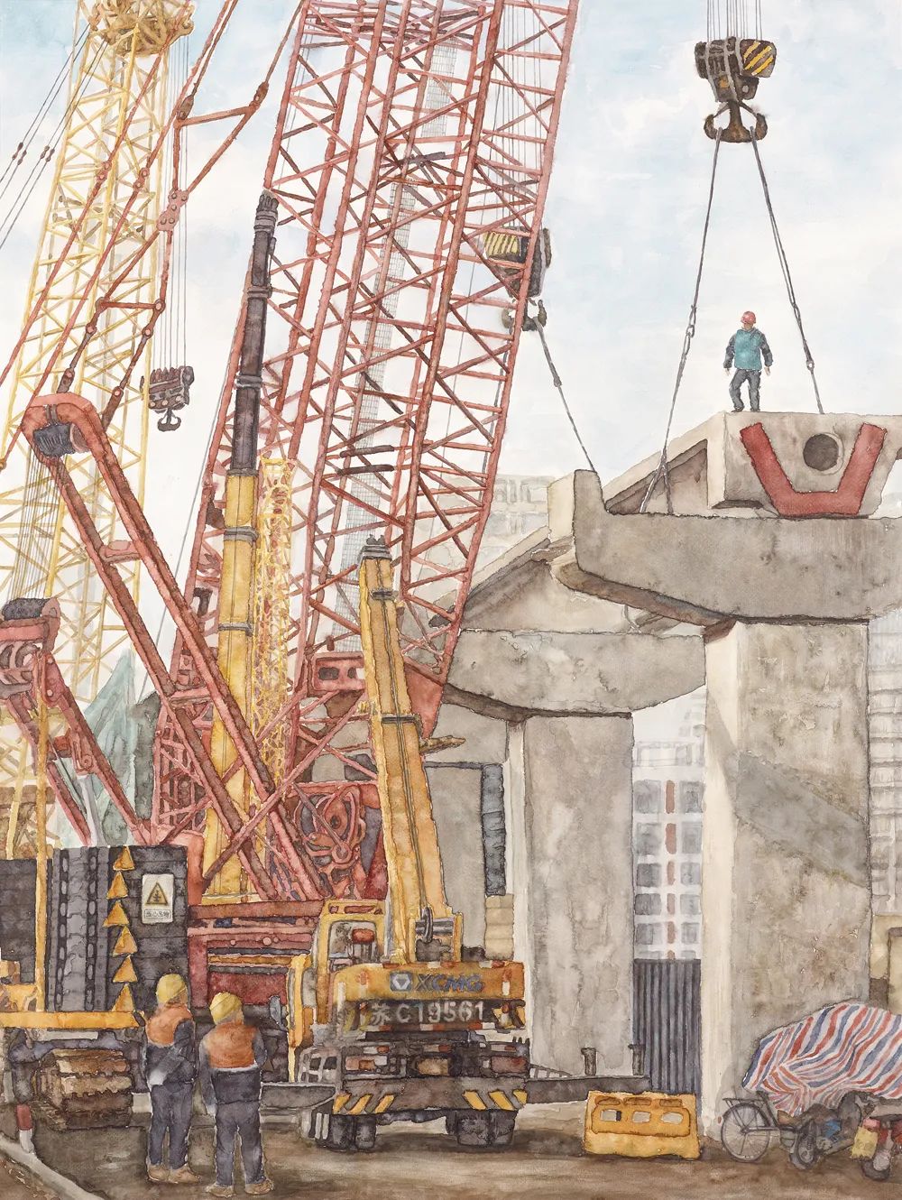 姜 明 铁臂入云端 水彩 90cm×70cm徐州