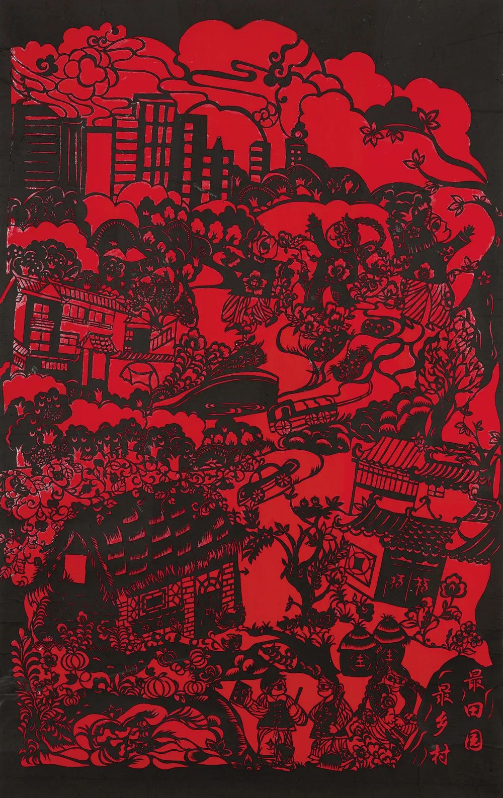 丁 园 乡村旧貌换新颜 剪纸 118cm×93cm 宿迁