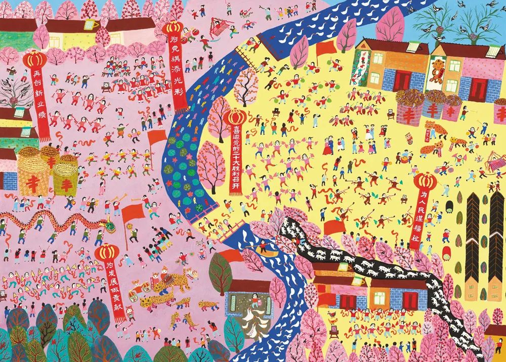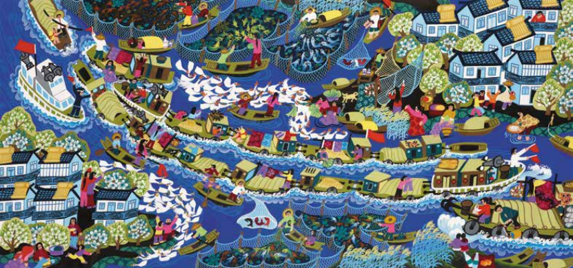 陈良成 富饶的母亲河 农民画 76cm×160cm 徐州