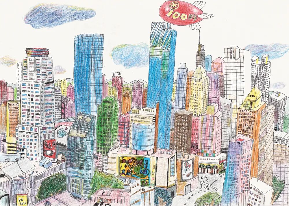 施贝娜 市中心的写生 儿童画 37cm×52cm