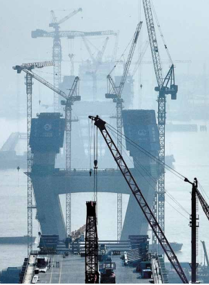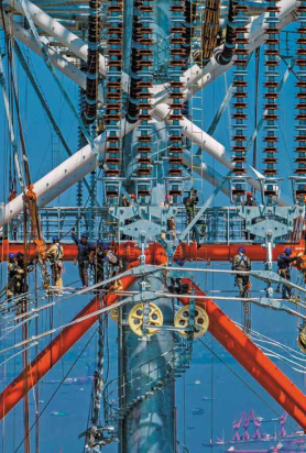 摄于泰州靖江市新桥镇,中国国家电网“北电南送”重点工程——泰州凤城至无锡梅里 500 千伏输电线路工程现场