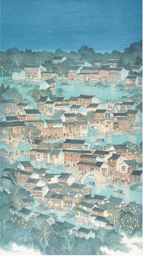 关 健 苏南古镇 中国画 220cm×123cm