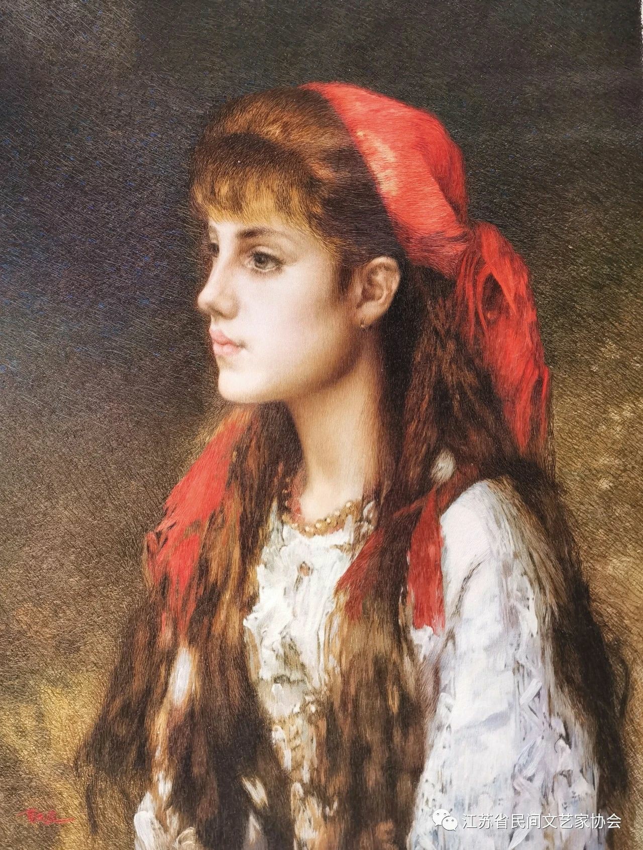 莫元花 戴红头巾的少女 [乱针刺绣]