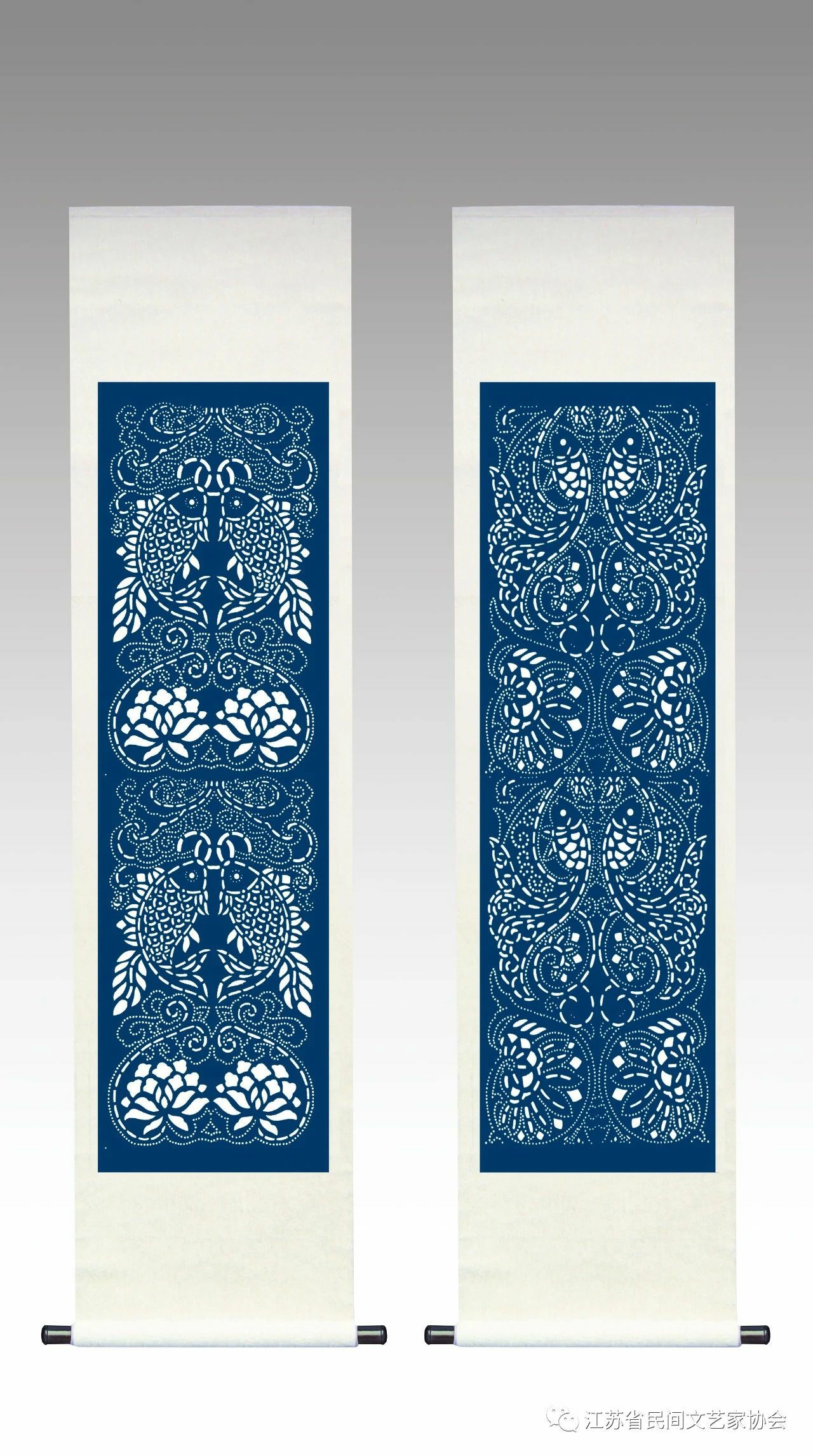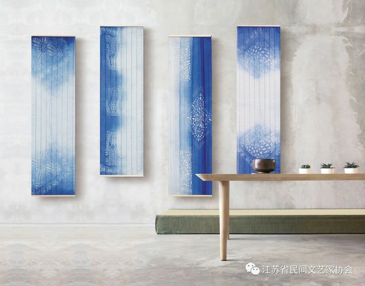 倪沈键 《如鱼得水》装饰画系列 [染织(蓝印花布)]