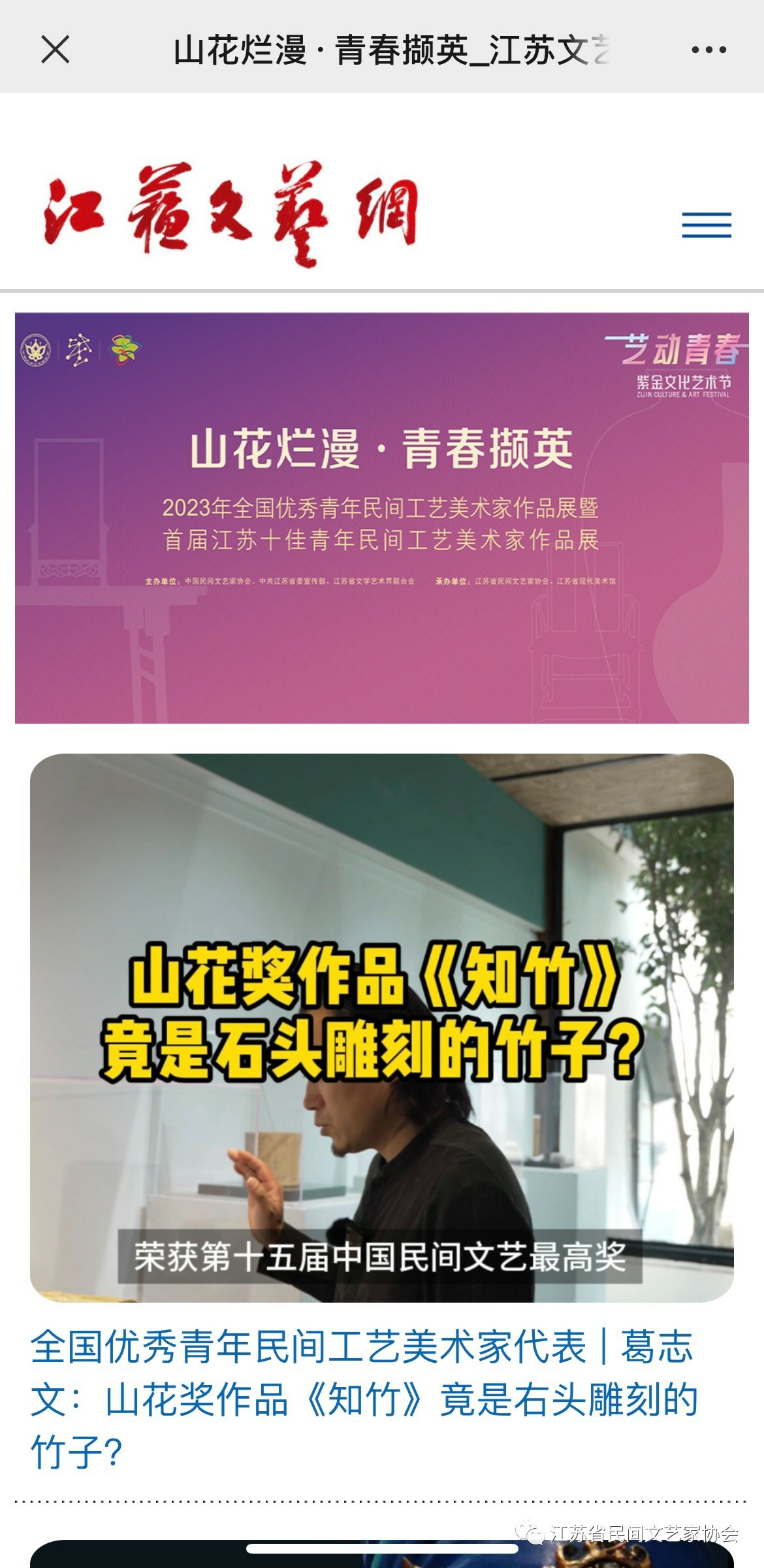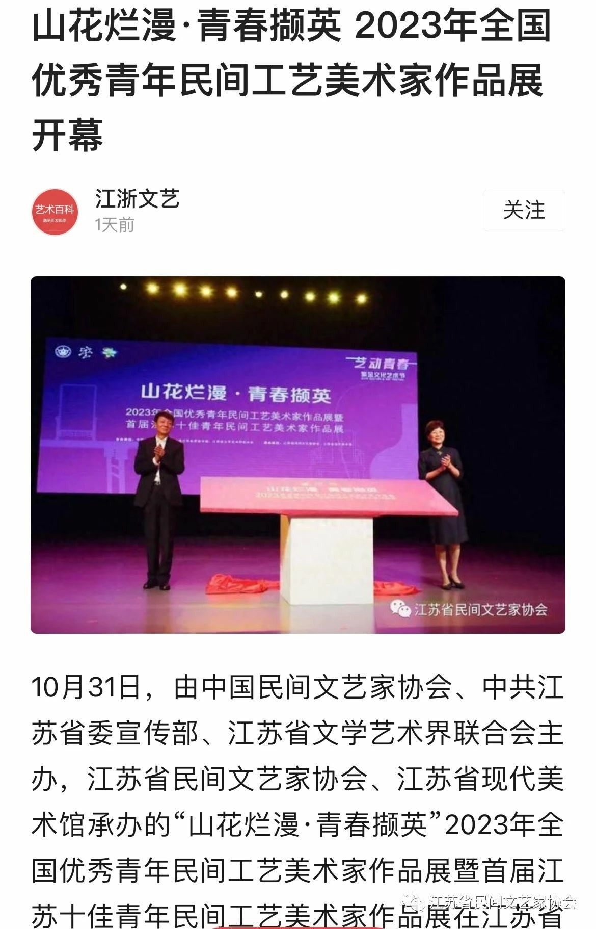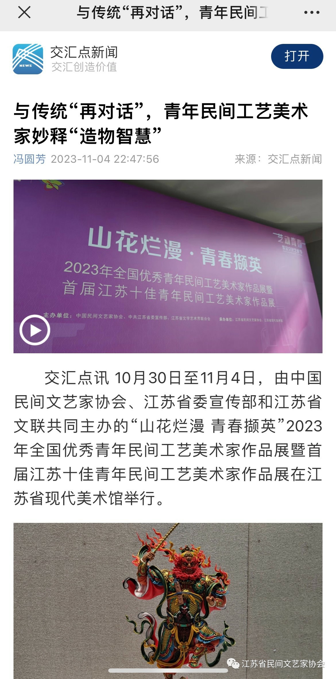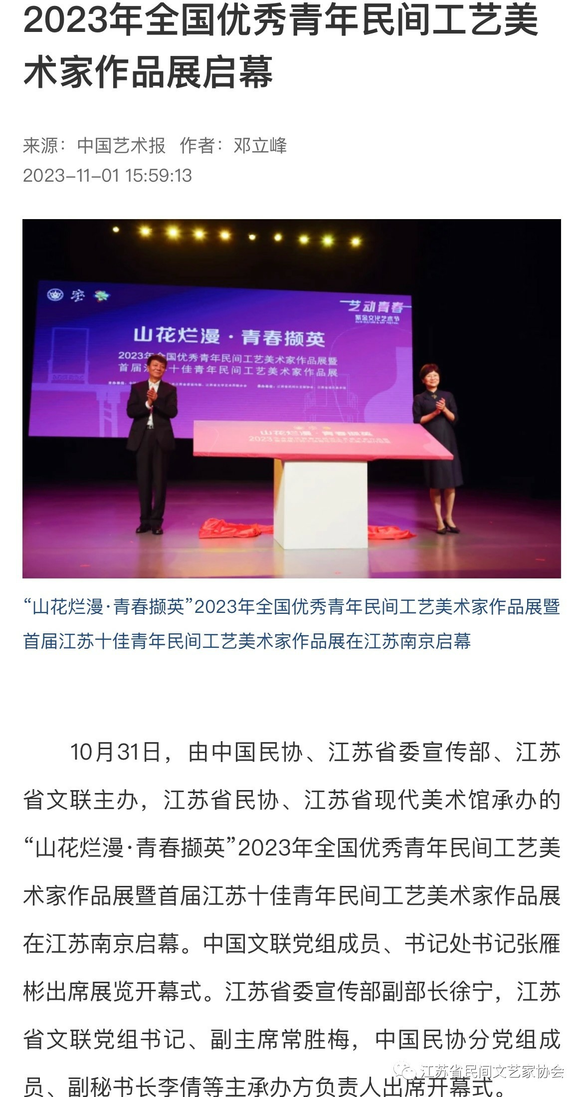 “山花烂漫·青春撷英”2023年全国优秀青年民间工艺美术家作品展暨首届江苏十佳青年民间工艺美术家作品展在江苏省现代美术馆开幕。媒体广泛关注!争相报道!