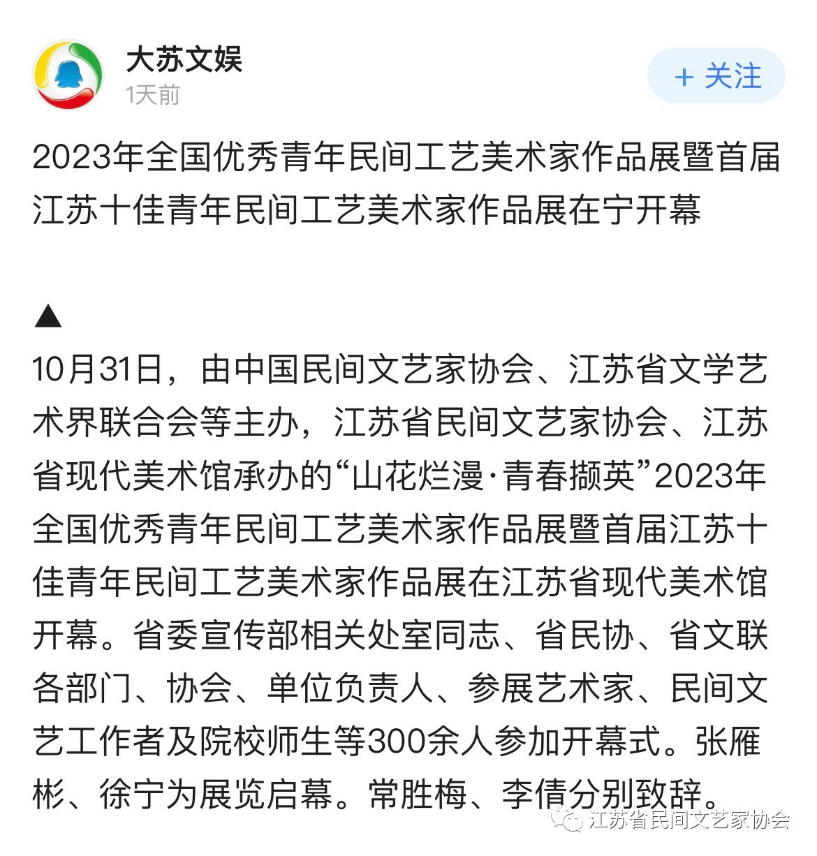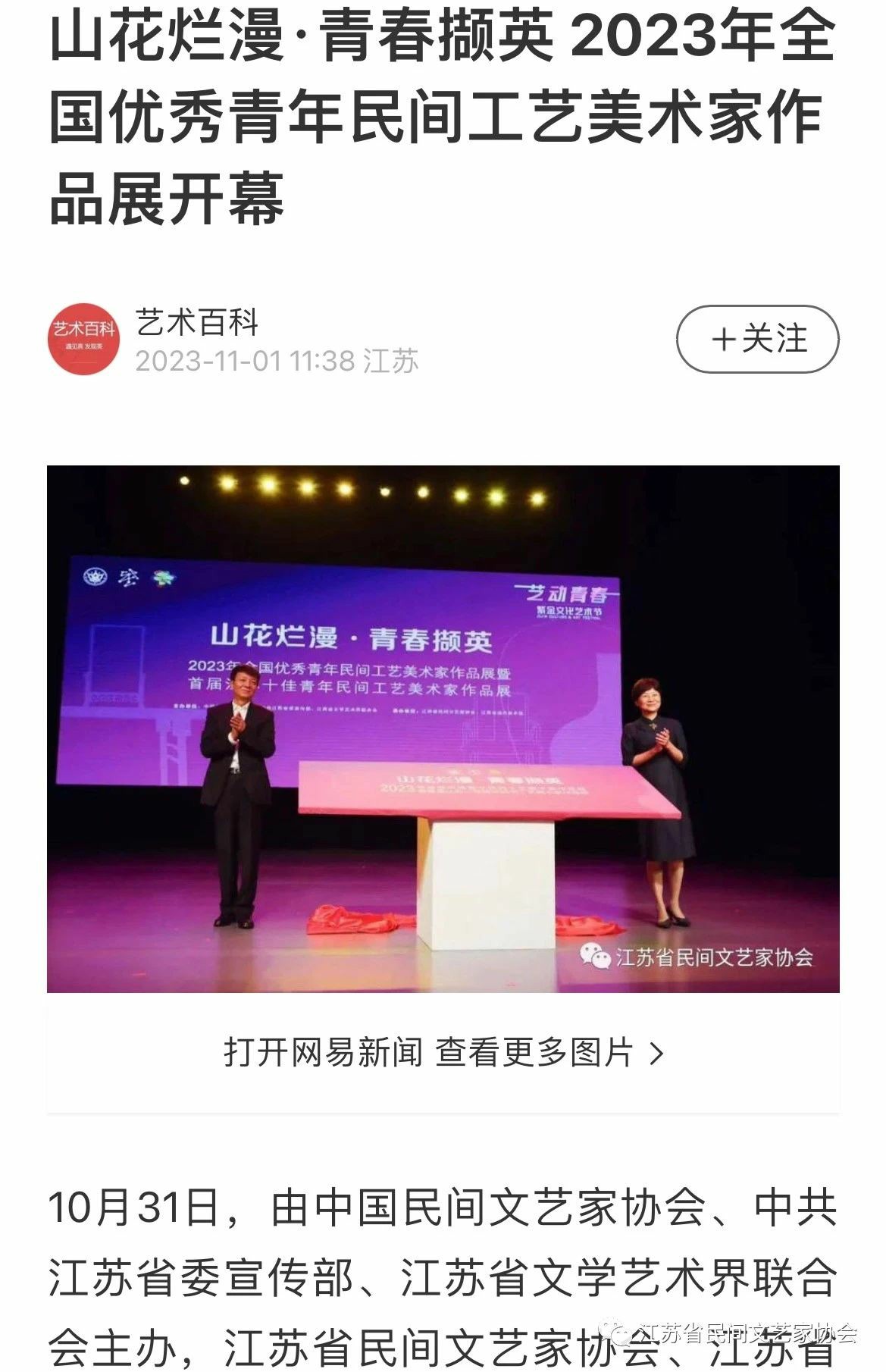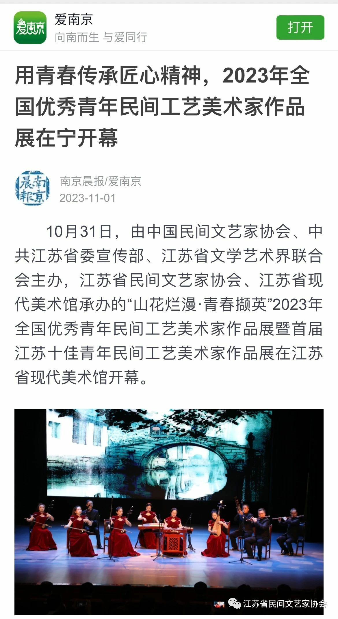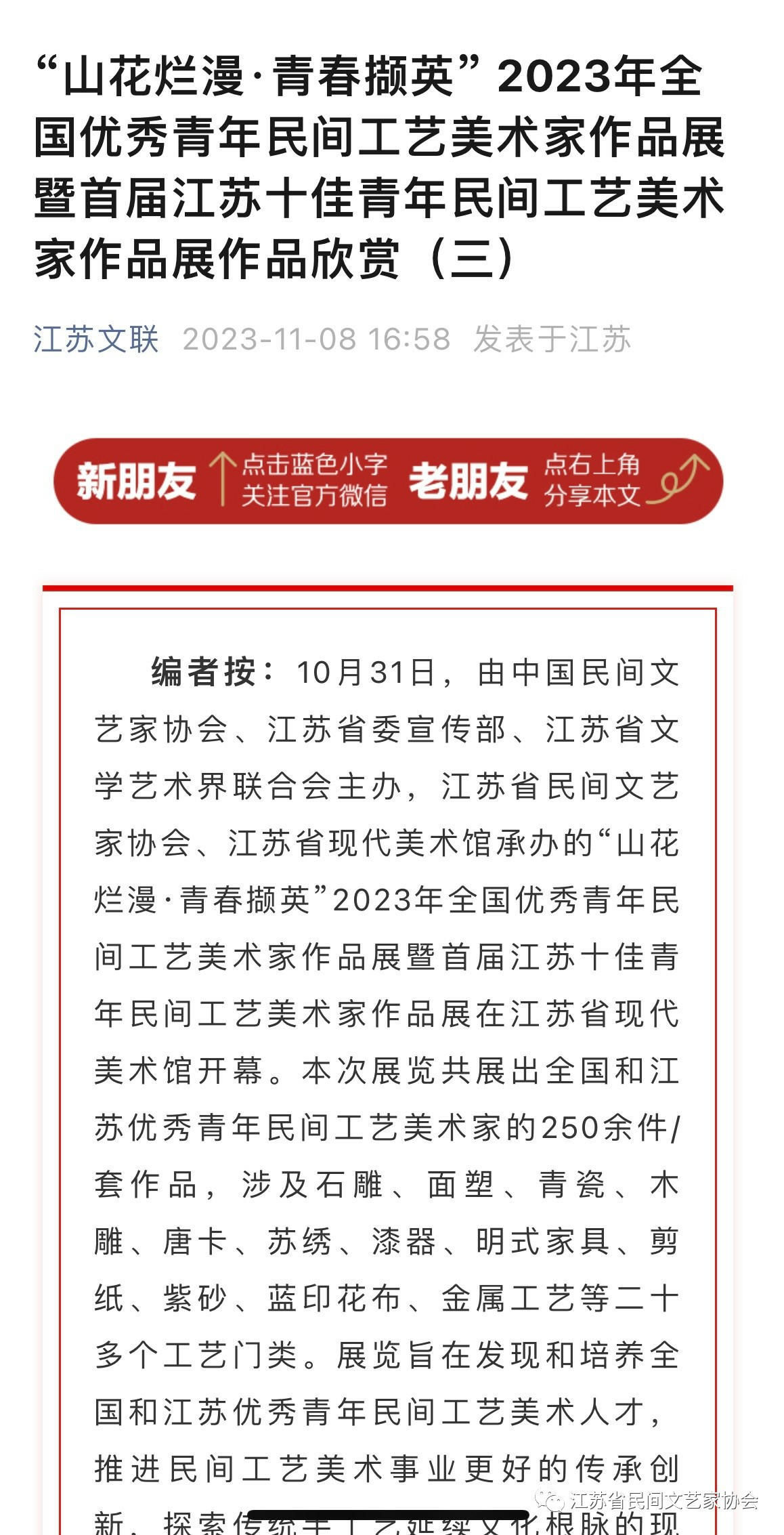 “山花烂漫·青春撷英”2023年全国优秀青年民间工艺美术家作品展暨首届江苏十佳青年民间工艺美术家作品展在江苏省现代美术馆开幕。媒体广泛关注!争相报道!