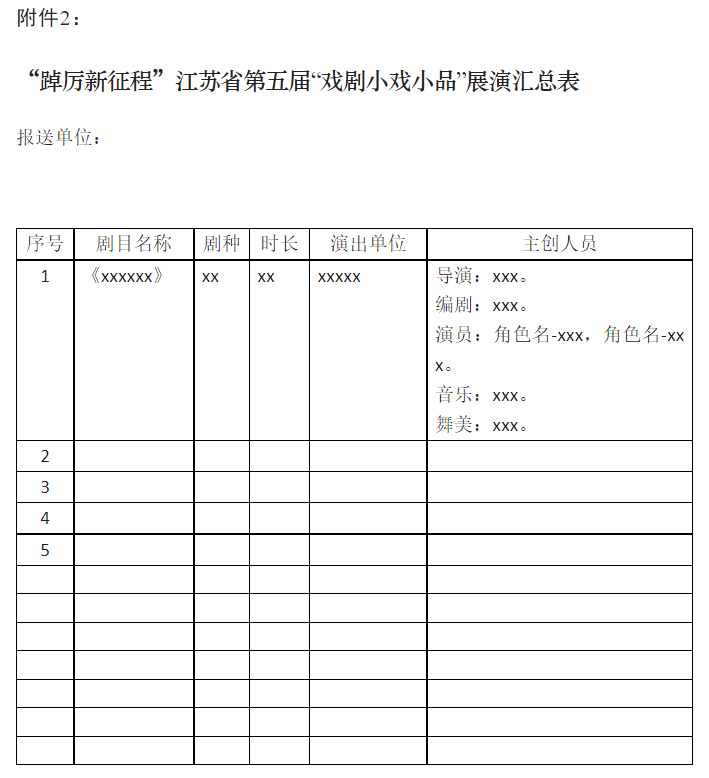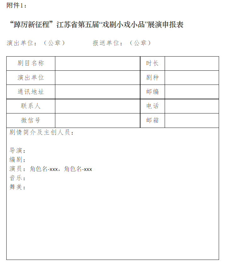 附件:1.“踔厉新征程”江苏省第五届“戏剧小戏小品”展演申报表