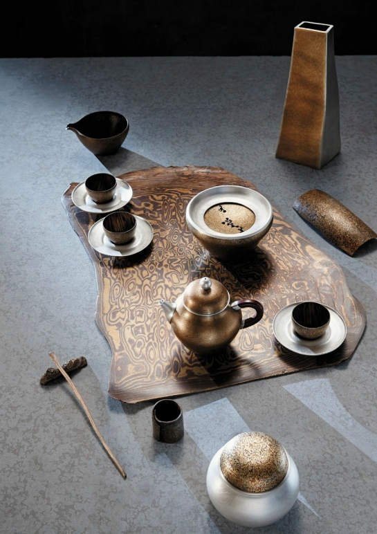 知者创物,意味着拥有丰厚知识和造物智慧的工艺美术家,从传统工艺原理和技巧的具身认知出发,运用现代技术和设计理念,对工艺与创作形式进行创新与改良,创造出具有当代社会审美趋向的作品。巧者述之,意味着青年民间工艺美术家能够通过娴熟细腻的手法、灵活多变的思维、独特的创意设计,讲述自己对于这个时代的理解,并传播新时代的文化与思想。莫元花的乱针绣作品《丝路》,以针为笔,以丝为墨,以绸为底,通过精湛的技艺与巧妙的构思,重现了陆上丝绸之路的壮阔景象。史志晔的明式家具系列作品,再现了王世襄先生所说的明式家具十六品即简练、淳朴、厚拙、凝重、雄伟、圆浑、沉穆、浓华、文绮、妍秀、劲挺、柔婉、空灵、玲珑、典雅、清新中的诸多品质,他们的作品展现了古与今的时空对话。姜炤的作品《静水流深》《故人》《继》所呈现出的“静中有动”的美的气质让我有一种与其对话的感动。多种多色的金属通过多层重叠、融合、千万次的锻打,被赋予了如木纹般绚烂的肌理效果。如此繁复的创作过程既是人创造物的过程,也是物与人磨合的过程,更是工艺美术家与所造物、与观者心灵对话的过程。