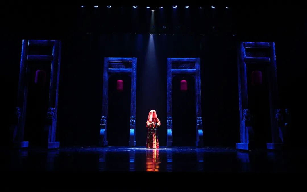 扬剧《门》由扬剧大戏《完结堂1937》压缩改编而来,讲述的是1937年,镇江完结堂内,主人公杨淑娴从“守节”到“守义”,从“守身”到“献身”的人生抉择。同样的内容表达,小剧场的表达比大戏更具有冲击力。剧目开场时,通过舞台调度,演员的红裙转眼换作素装,台上的喜堂转换间变作了贞节堂,那一刻舞台的静默带来惊人的压迫感;全剧的舞台装置皆由一扇扇“门”组合变化而来,这扇门既是象征意义上的,是阻挡了杨淑娴奔向自由的藩篱,是遮挡了景秀眼前世界的重重高墙,是杨淑娴迈向的生死之门,也是现实意义上的,是宋家林、杨淑娴们拼死守护的家门、堂门、国门。