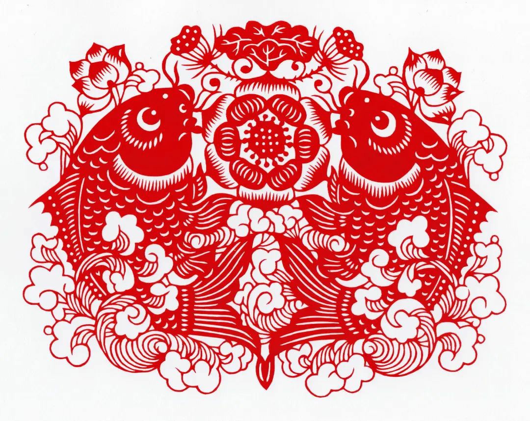 张钧 《双莲花鱼》 剪纸