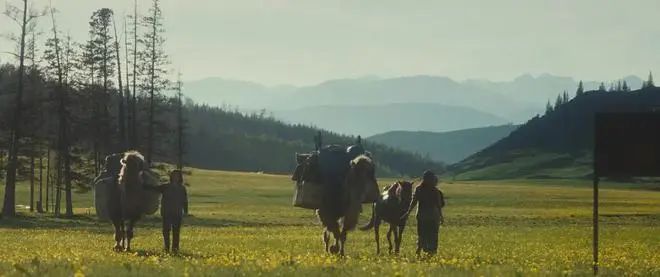 三、人与自然的和谐共生。在阿勒泰,人与自然和谐共生,敬畏自然、依赖自然同时也保护自然。月光下,巴太徒手掰开的红苹果,一半给了心爱的姑娘,一半给了马儿踏雪,这一画面先是让人惊讶,后又让人释然,人和马当然是可以相提并论的,人与自然的和谐莫过于此。夏季牧场通常分布在海拔相对较高的山间,夏季这里雨水充沛、牧草茂盛,冬季这里往往因为寒冷和积雪无法容纳牲畜生存。因此,传统的游牧生活需要四季流转在不同的草场之间,依季节时令有序转场,这是一种适应自然的生活方式,也是一种保护草场的朴素智慧。李文秀从城市回到草原,从最初的不适应到最终的融入,象征着现代人对自然与家乡的重归与认同。这一过程中,她的成长和变化,不仅是个人层面的觉醒,也是对现代生活方式的一种反思和超越。一幅幅宁静而深远的画卷,不仅展现了自然之美,也让观众感受到人与自然和谐相处的意境。
