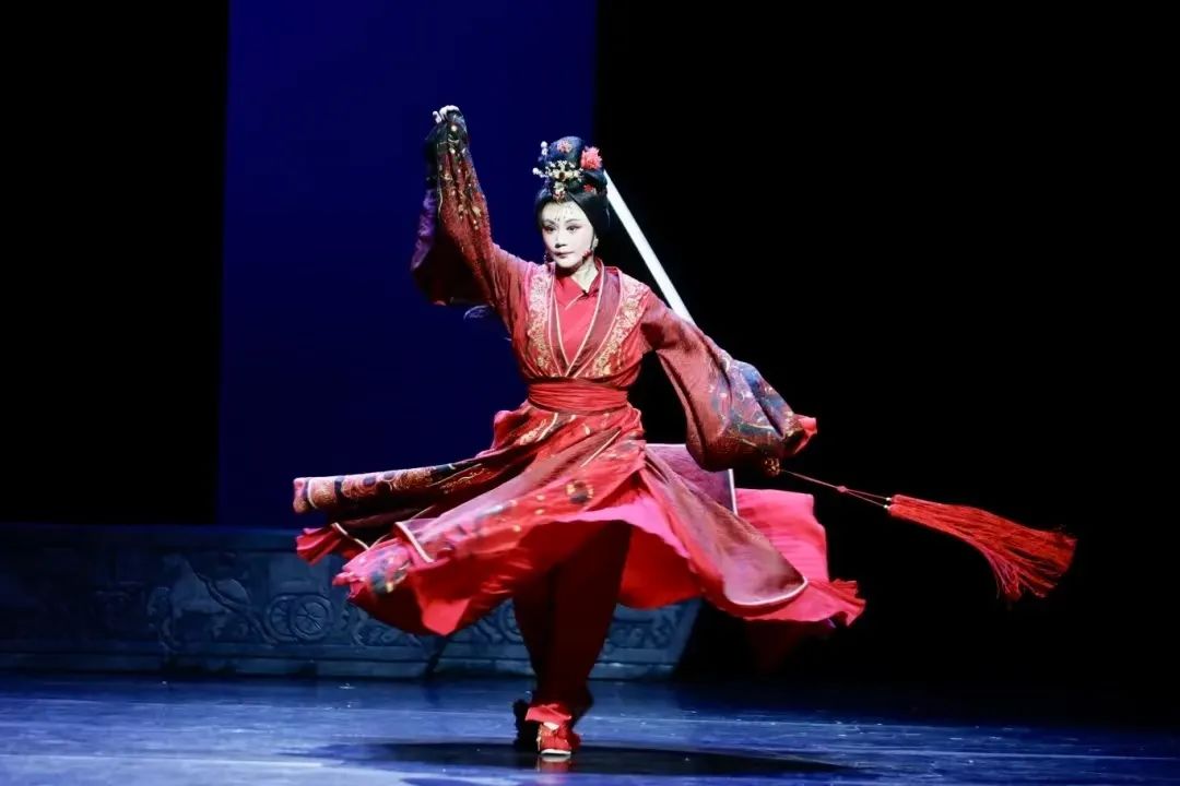 柳琴戏《美人草》匠心独运,全剧打破了“项羽中心论”的叙事框架,以虞姬为主要表现对象,以美人草——虞姬死后,精魂所化的细草为引,形成双旦一净的表演模式。全身红衣打扮的少女虞姬、白衣飘飘的美人草、庄严肃穆一身黑的项羽……人物服装的着色既是人物身份、性格的象征,也是舞美审美的外化,可观性强。少女虞姬在道路上遇到美人草,虞姬也面临人生一次重大抉择:向东赴刘邦之约踏青东城,还是向西赴项羽之约游猎西城?在虞姬准备选择项羽之际,美人草及时阻止了少女虞姬,以时空转换的方式,带着虞姬见证了项羽由盛而衰,以致乌江自刎的人生悲剧。戏曲的结构非常巧妙,截取了项羽一生中重要的三个片段:巨鹿之战、火烧阿房宫、垓下之围。项羽人生的三个片段显现了项羽性格与命运的面向:巨鹿之战中的英勇,火烧阿房宫中的长情缱绻与暴虐,垓下之围中英雄的悲情与落幕。而其中,始终伴随项羽左右,给予项羽儿女之情的都是虞姬。少女虞姬在美人草的引领之下,见证了她与项羽爱情的最终走向:死亡。但是,她仍然义无反顾地选择向西而行,赴项羽游猎西城之约。法国作家罗曼·罗兰曾经说过:“世界上只有一种英雄主义,就是看清生活的真相之后依然热爱它。”柳琴戏《美人草》中的英雄主义无疑是属于虞姬的。因为她在看清了项羽的人生走向,以及她与项羽爱情的必然结局——死亡之后,仍然忠于自己的内心感受毫不犹豫地选择了项羽。