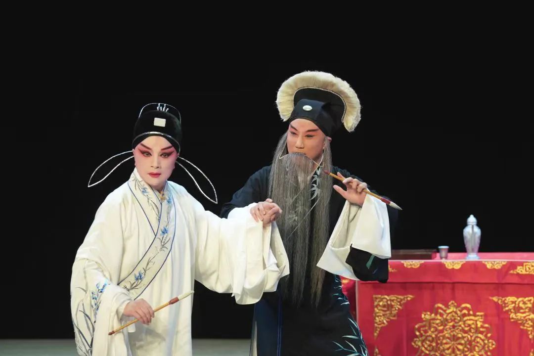 第三场,在吴道子悔不当初、欲触柱而亡的时候,卢罂公之魂提点吴道子使其开悟。吴道子遂得图成。这一幕是全剧的收尾,也是吴道子心灵救赎和艺术升华的关键所在。卢罂公的魂魄再次出现,如同一束照亮吴道子内心黑暗的明灯,指引他走出了自我怀疑和绝望的泥潭。在卢罂公的点拨下,吴道子终于领悟到“地狱道”的真谛,完成了画作,也完成了自我成长和蜕变。这一幕不仅为吴道子的创作之路画上了圆满的句号,也为全剧的主题升华提供了有力支撑,让观众在紧张刺激的剧情中,感受到了艺术创作的艰辛与伟大。