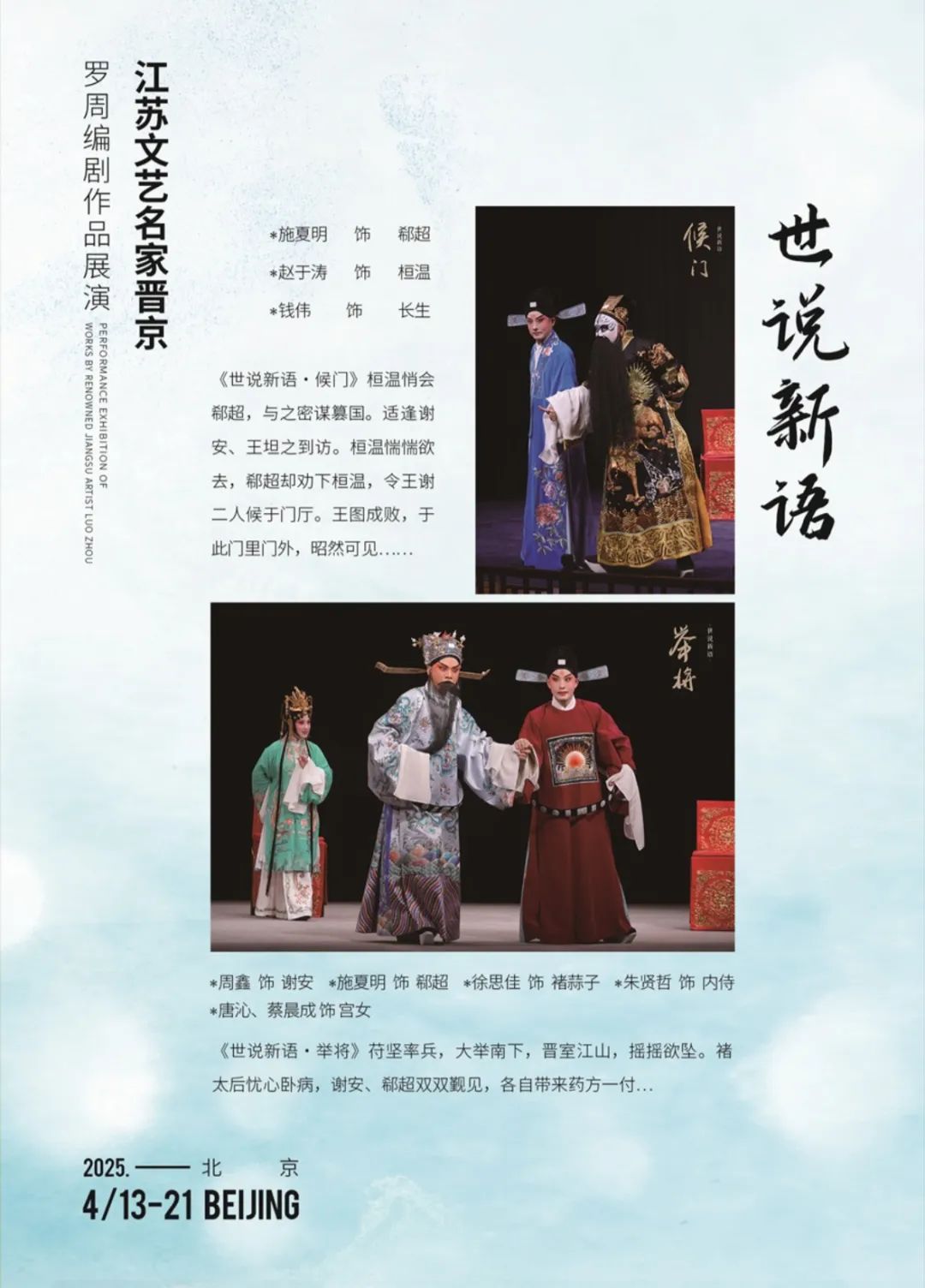 4月16日,中央戏剧学院实验剧场内座无虚席,作为 “江苏文艺名家晋京” 展演剧目的昆剧《世说新语》在此上演《谢公故事》系列,包括《候门》《举将》《破局》《梦鸡》四折,以 “历史长卷” 形式生动呈现了谢安、郗超等魏晋风流名士的人物群像,引发了强烈的观剧热潮。