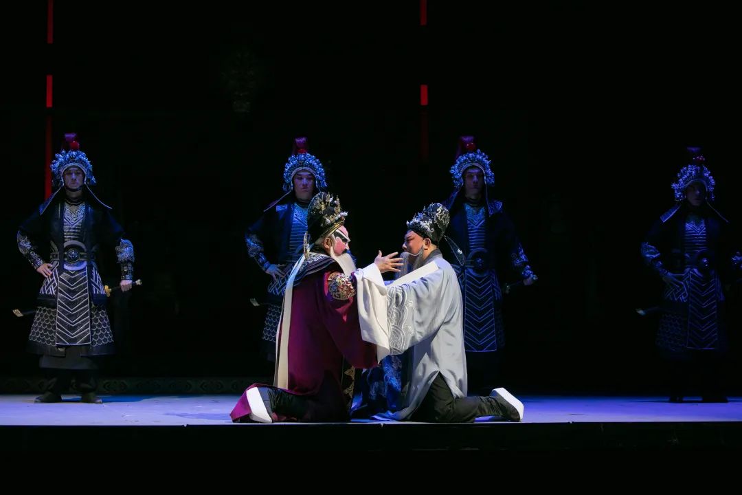 秦腔《无字碑》全剧由“钩心”“进饼”“入戏”“面碑”四折构成,以武则天与丈夫、儿子、朝臣为人物背景,以无字碑为架构主线,剧情紧凑流畅、跌宕起伏、感人至深。音乐唱腔雄浑大气、悲壮高昂,生动展现出大唐气象和铿锵唐音,彰显了武则天“大道孤勇、一往无前”的胆略与气魄。