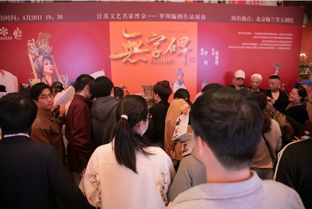 演出结束后,还举行了主演见面会,场面热烈。一位久居北京的陕西富平女士在《无字碑》首演时,就在西安开元大剧院看过半场,这次得以在北京看完了全场《无字碑》,她激动地说,演出特别震撼,服、化、音乐无一不精美。一位20多岁的姑娘专程从廊坊到梅兰芳大剧院看戏,她表示这部秦腔新编历史剧让人耳目一新, 之前在网上看过片段,但是现场观看还是给了她强烈的冲击,让人真切感受到武则天这位女皇帝心路历程。《无字碑》这正是西安三意社面对时代课题交出的答卷,用现代审美意趣讲述中国历史故事,在开拓古老秦腔艺术新境界中,留住老观众,吸引年轻观众。