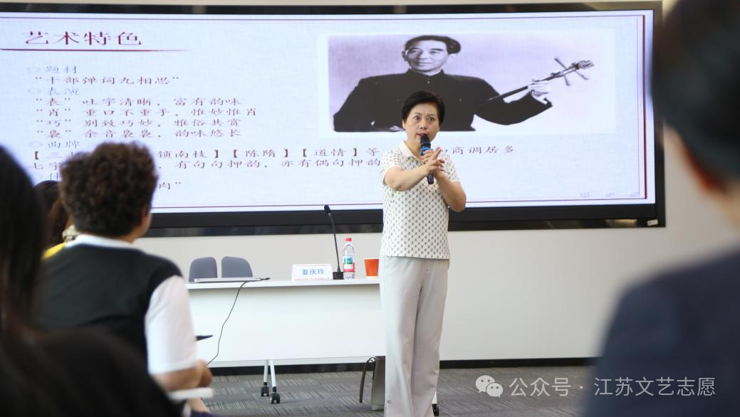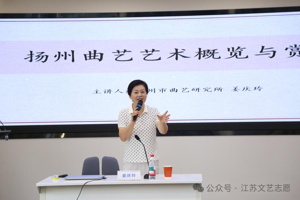 7月27日下午,由江苏省文学艺术界联合会、江苏开放大学联合创办的“江苏省明德艺术学校”系列培训第八场活动圆满落幕。作为此次系列培训的收官之作,活动特别邀请到中国曲艺“牡丹奖”得主、一级演员姜庆玲老师,带来题为《扬州曲艺艺术概览与赏析》的专题讲座,为首批50名基层文艺工作者与爱好者,呈现了一场“醒木一响、满座皆惊”的曲艺盛宴。讲座由我院教师施峰主持。
