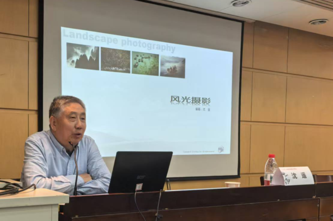 当日上午,江苏省摄影家协会名誉主席沈遥以《风光摄影艺术与鉴赏》为题,围绕风光摄影核心创作理念展开分享。他以风光摄影解构理论为基石,系统梳理出完整的创作逻辑—— 从感受自然、观察细节、构思主题,到排除冗余、打磨构图、突破创新的视觉感受,再到平衡 “写实为基、写意为魂” 的艺术表达,层层递进解析创作精髓。他明确指出:“风光摄影不是对自然景象的简单复刻,而是借景抒情、寓情于景的艺术创作,需紧扣‘天时、地利、人和’三大核心,通过镜头挖掘自然美的本质,传递创作者的精神内核。” 为让学员直观理解 “天时” 的重要性,沈主席展示了同一场景在不同时段的光影作品:清晨逆光下的山峦轮廓锐利分明,正午散射光中的花海色彩饱满鲜亮,傍晚暖调里的湖面波光温柔动人,生动诠释了光线角度、强弱与色温对画面氛围的塑造作用。谈及“地利” 的运用时,他结合具体风光案例,详细讲解点、线、面在构图中的应用技巧,强调 “构图的关键是发现自然本身的形式美感”。