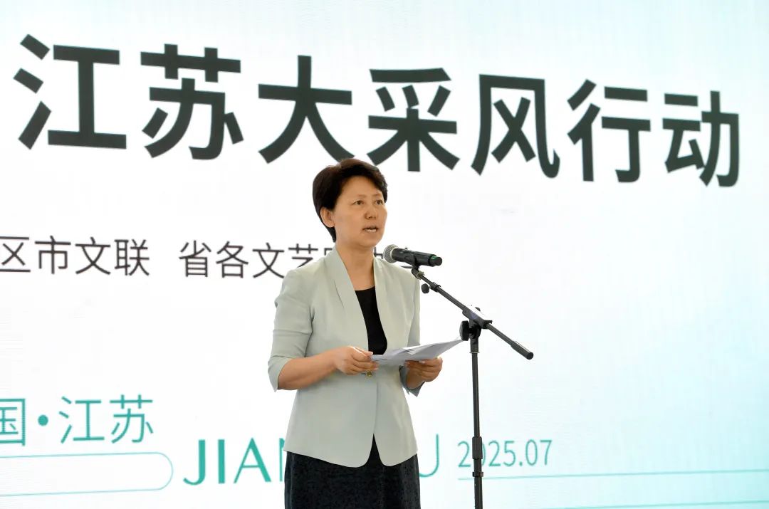 常胜梅在讲话中指出,“强富美高”新江苏宏伟蓝图,是习近平总书记为江苏擘画的未来图景,是全省上下砥砺奋进的时代主题。启动本次大采风行动,是江苏文艺界深入学习贯彻习近平新时代中国特色社会主义思想和习近平总书记关于江苏工作重要论述、落实省委省政府建设“强富美高”新江苏决策部署的重要举措。要高举思想旗帜、坚守人民立场、展现使命担当,深刻把握本次采风行动的时代意义与政治方向。要紧扣主题,聚焦“经济强”的澎湃动能、“百姓富”的幸福图景、“环境美”的绿色诗篇、“社会文明程度高”的德润风尚,以文艺的独特视角和生动笔触,倾情书写江苏大地的壮美画卷与时代华章。要深入贯彻中央八项规定精神,严守政治纪律与组织纪律,端正作风、潜心创作,充分展现文艺工作者的务实作风与良好形象。她呼吁艺术家将艺术理想融入时代洪流,把创作之根深扎江苏沃土,满怀激情地踏上本次采风征程,共同书写“强富美高”新江苏建设的壮丽诗篇。