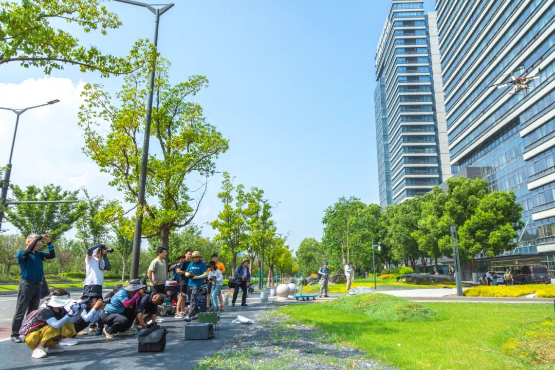在浦口高新区科创大厦活动现场,可照亮近3000平米夜空的悬停无人机、能穿越危险地质区域开展紧急救援的无人机急救车等,成为摄影家们镜头下的焦点。他们用相机捕捉精彩瞬间,通过一次次对焦、一张张照片,定格浦口高新区企业科技创新的累累硕果,以光影艺术记录浦口高新区低空经济发展的铿锵步伐。