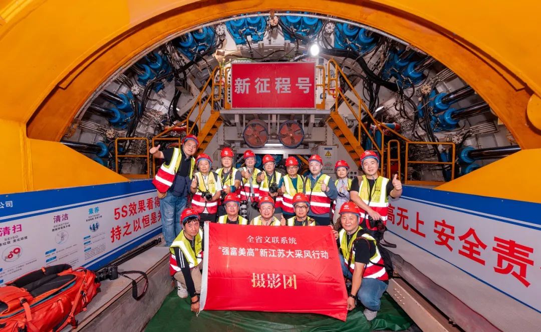 在中铁十四局大盾构公司,摄影家们走进科技馆,认真听取关于公司工艺工法、核心技术、产业链及精细化管理等方面的情况介绍。作为2016年8月在南京注册成立的国内第一家大盾构专业工程公司,其从部队转型到地方,成长为国内领先、世界一流知名品牌的发展历程,给摄影家们留下深刻印象,大家纷纷举起相机,记录企业发展的辉煌成就以及为国家建设作出的卓越贡献。摄影家们还深入到南京地铁4号线二期的地下盾构机掘进现场,在盾构机的轰鸣破岩声中,大家震撼于这地下奇迹的创造,用相机定格建设者们的专注忙碌,感受城市跳动的“脉搏”。