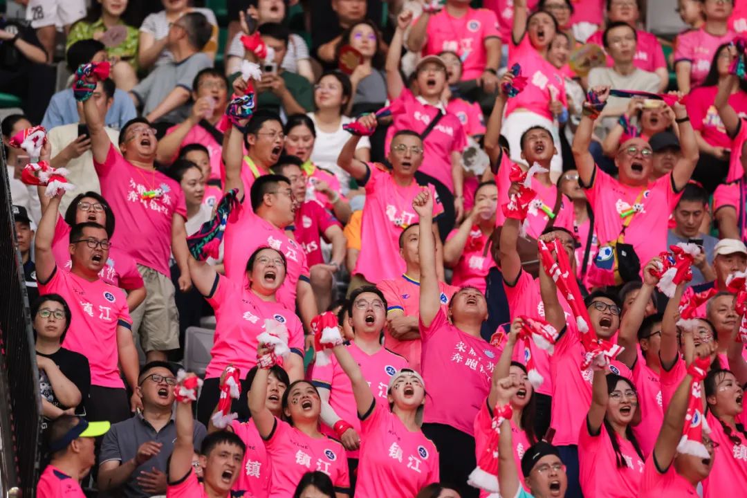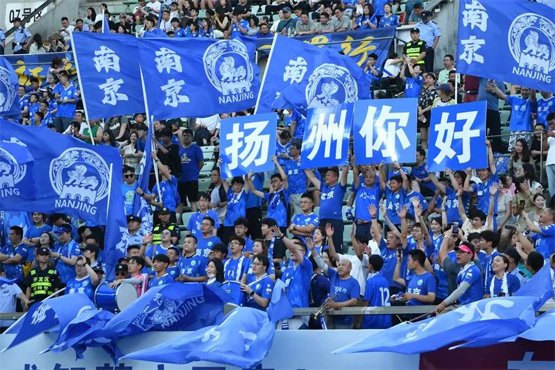 7月20日,“苏超”第七轮扬州队对阵南京队,南京球迷现场助威,并打出了“扬州你好”。吴俊 摄