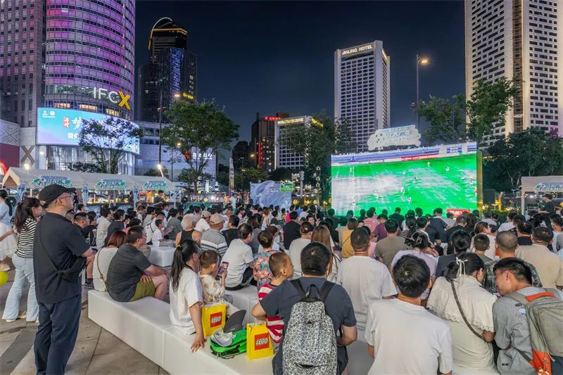 7月20日,苏州工业园区,市民在金鸡湖畔观看“苏超”,感受赛场火热激情,乐享夏夜足球盛宴。张锋 摄