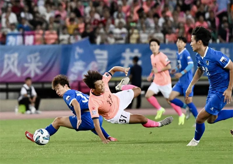 7月20日,“苏超”第七轮苏州队主场4比0大胜镇江队,双方球员在激烈争夺。张从余 摄