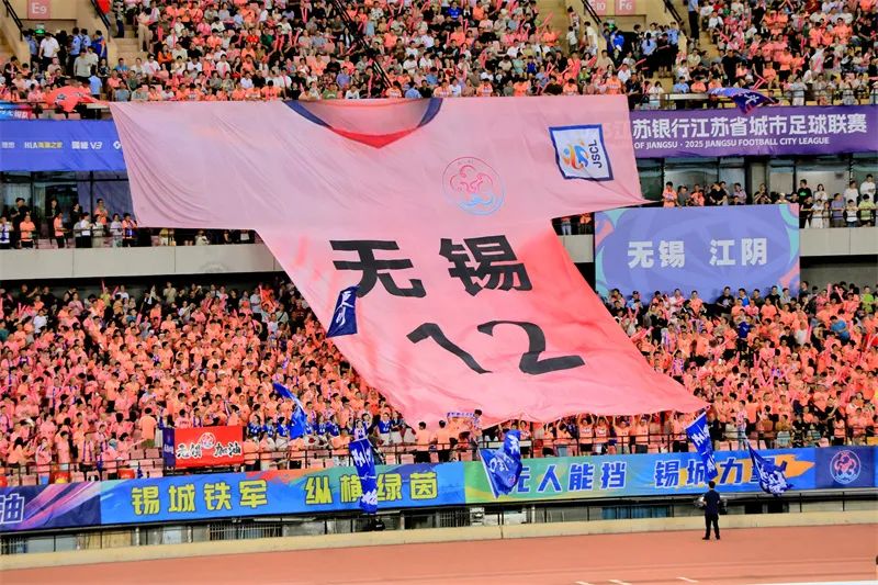 7月20日,“苏超”第七轮无锡队对阵淮安队,无锡队在主场展示了一件巨幅12号球衣。阴如林 摄