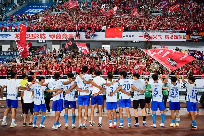 7月20日,“苏超”第七轮常州队主场对阵徐州队,常州球员向球迷致谢。王锐 摄