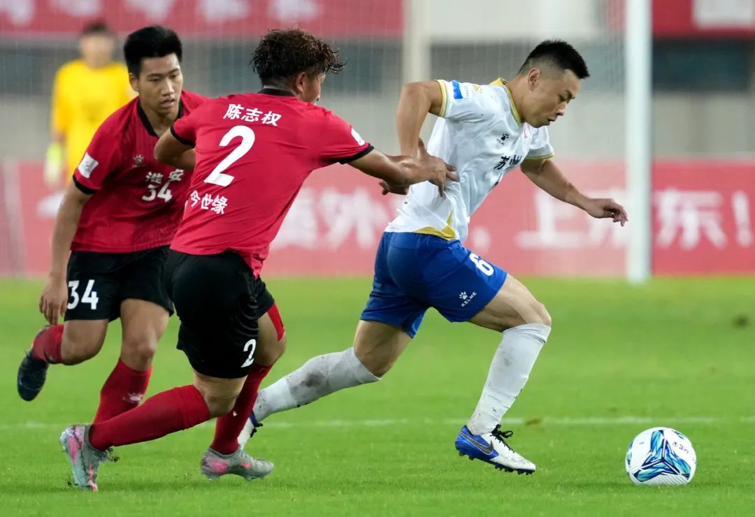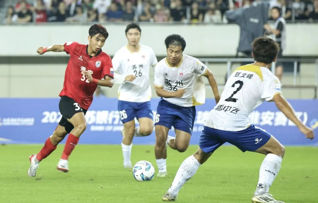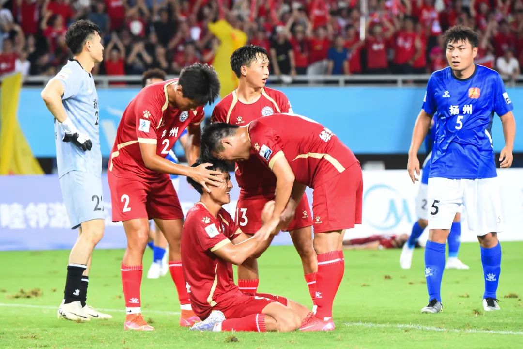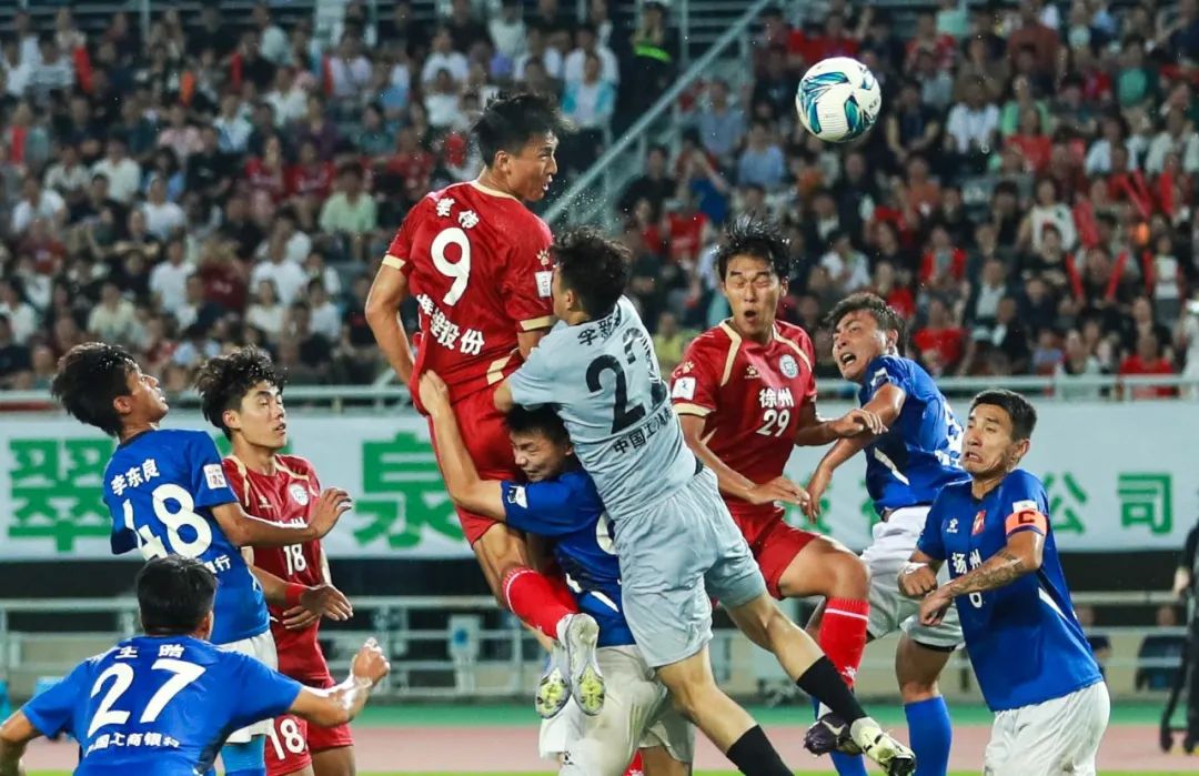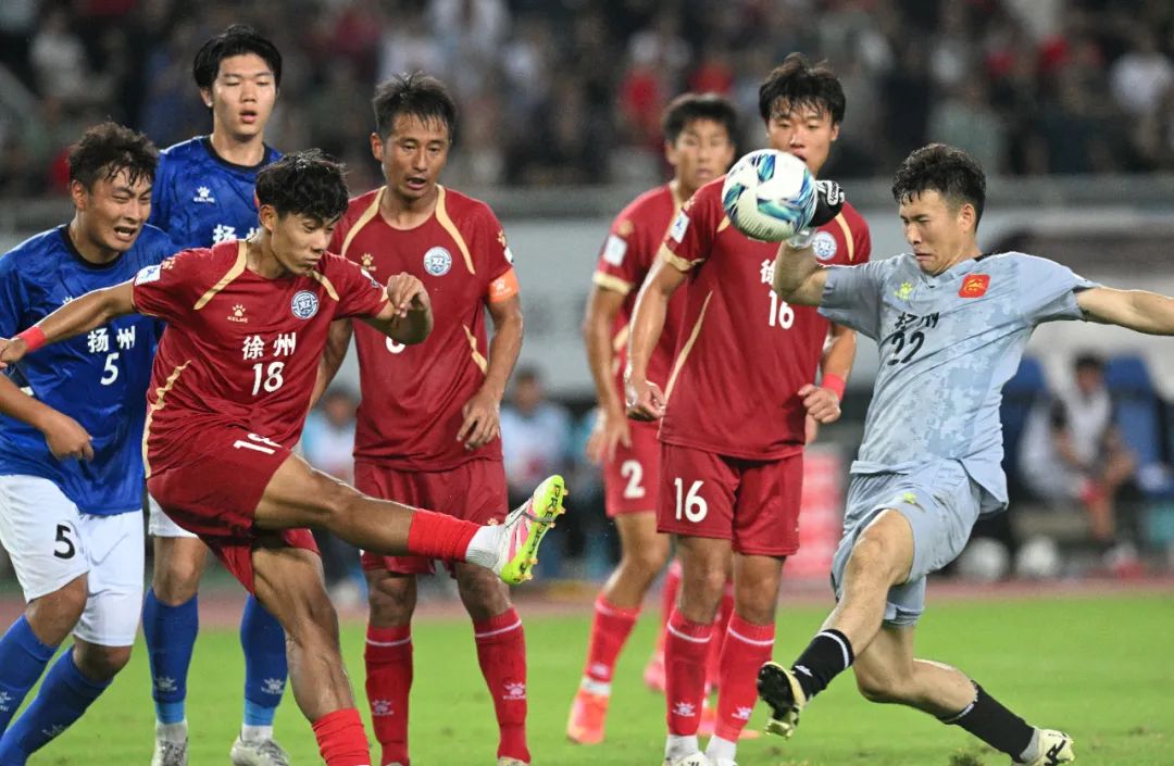 徐州奥体中心体育场,积分榜排名第三的徐州队主场对战排名倒数第三的扬州队,本是场抢分大战,但在扬州队球员的奋力拼搏下,徐州队2:1险胜,扬州队打出了“扬州精神”!