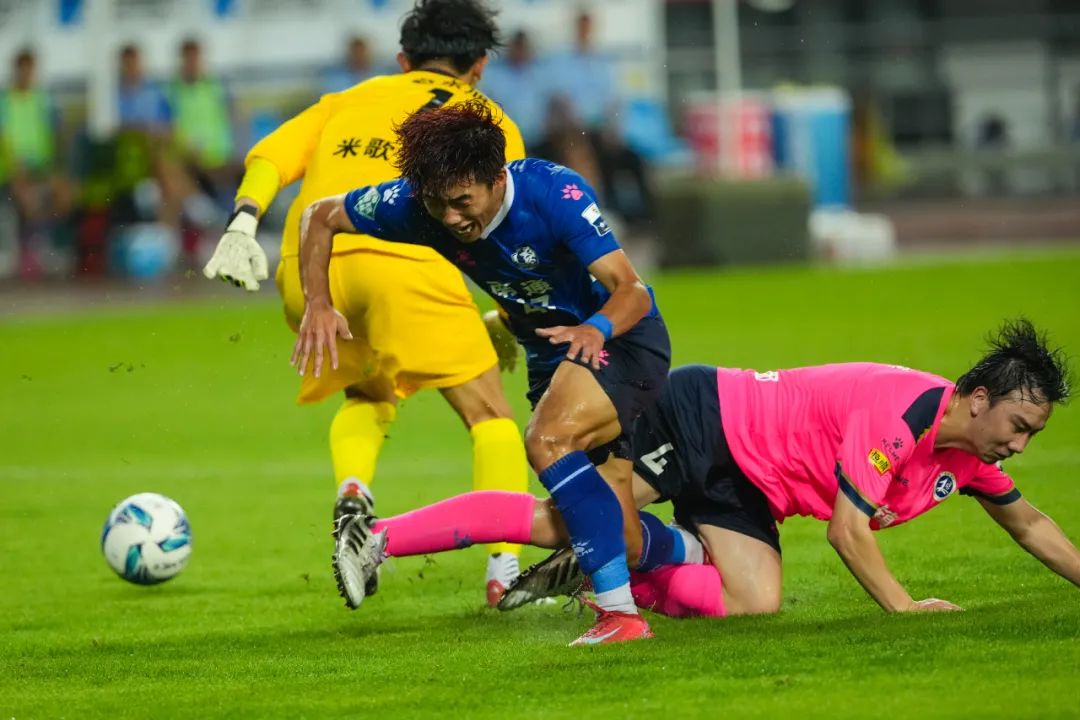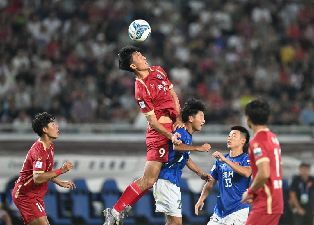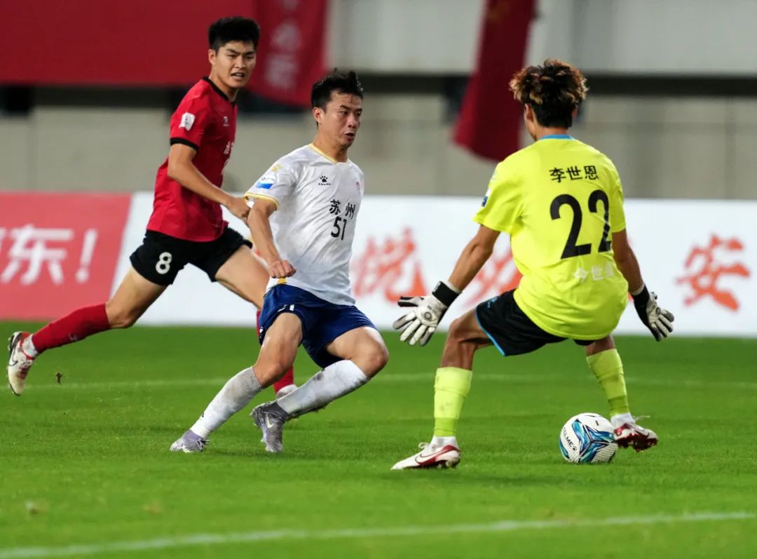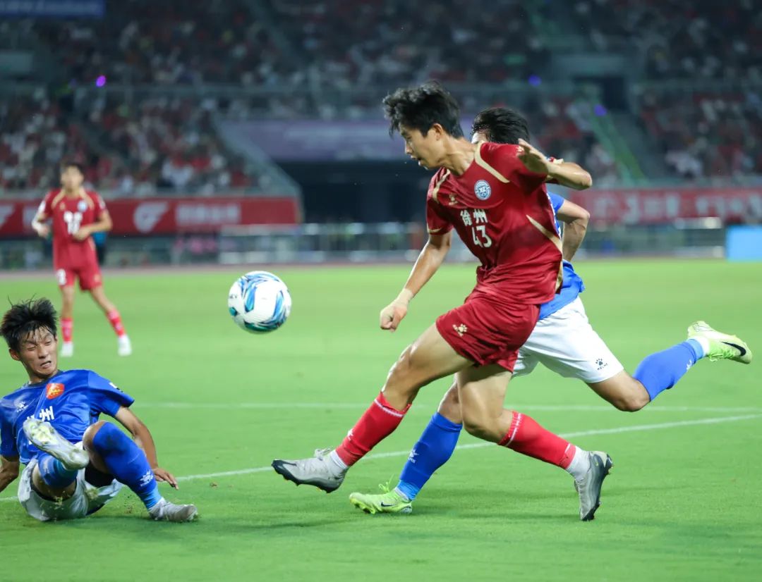 徐州奥体中心体育场,积分榜排名第三的徐州队主场对战排名倒数第三的扬州队,本是场抢分大战,但在扬州队球员的奋力拼搏下,徐州队2:1险胜,扬州队打出了“扬州精神”!