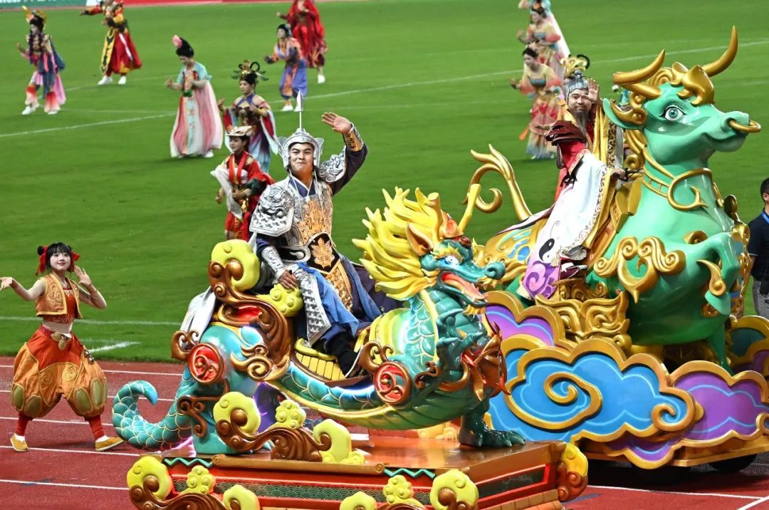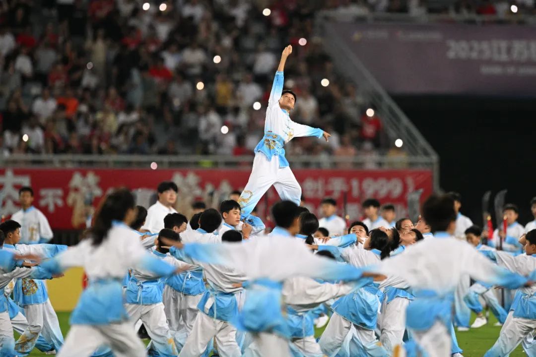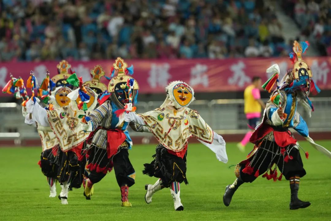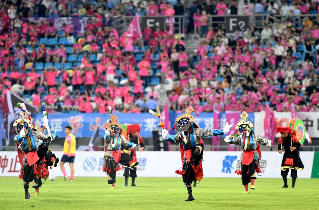 8月2日,“苏超”第八轮,镇江队与南通队的比赛,中场表演体现民族融合。郎从柳 摄